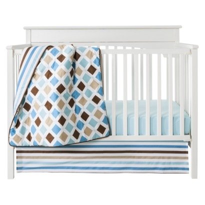 Bacati - Juego de cuna Mod Stripes Aqua / Choc de 10 piezas sin parachoques