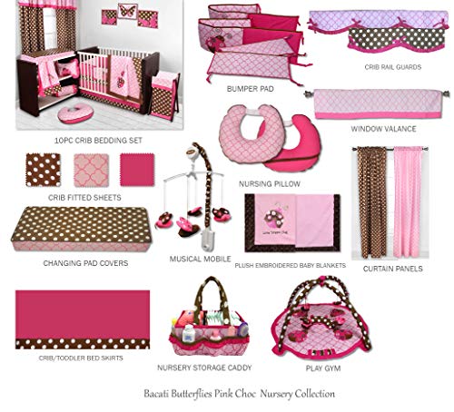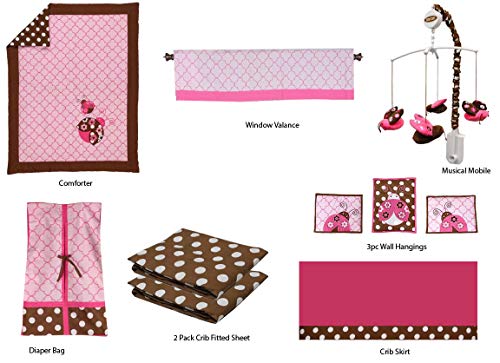 Bacati Ladybug Pink / Chocolate Juego de cuna para niñas de 10 piezas con 2 sábanas (almohadilla protectora no incluida).