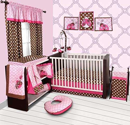 Bacati Ladybug Pink / Chocolate Juego de cuna para niñas de 10 piezas con 2 sábanas (almohadilla p
