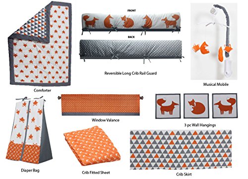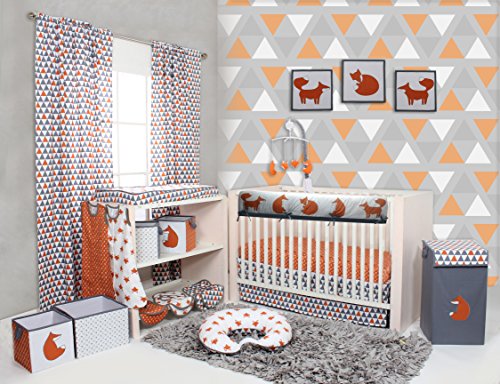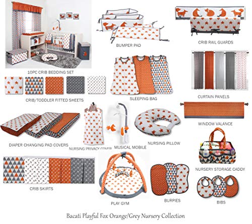 Juego de cama para cuna Bacati Playful Fox, 10 piezas, en bolsa, con protector de riel largo, naranja / gris