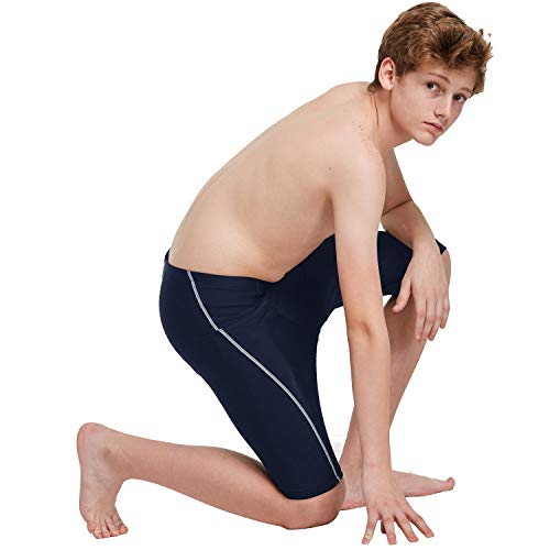 - 80% Nylon/20% Spandex;Lining: 100% Polyester; UPF 50+ sun protection - Elastic closure - SUN PROTECTION:Boys swim jammers with UPF 50+ features blocks sun's harmful rays. - ADJUSTABLE:The swim shorts has elastic waistband with interior adjustable drawstring for a secure fit. - Boys swim shorts,quick-drying,chlorine resistant,moisture-wicking material for a comfortable wear. - TECHNOLOGY:Youth jammers are lined with flatlock seams supply smooth and non-chafing. - Boys swim team trunks work great for swim team practice,swimming training,playing on the beach or summer club.