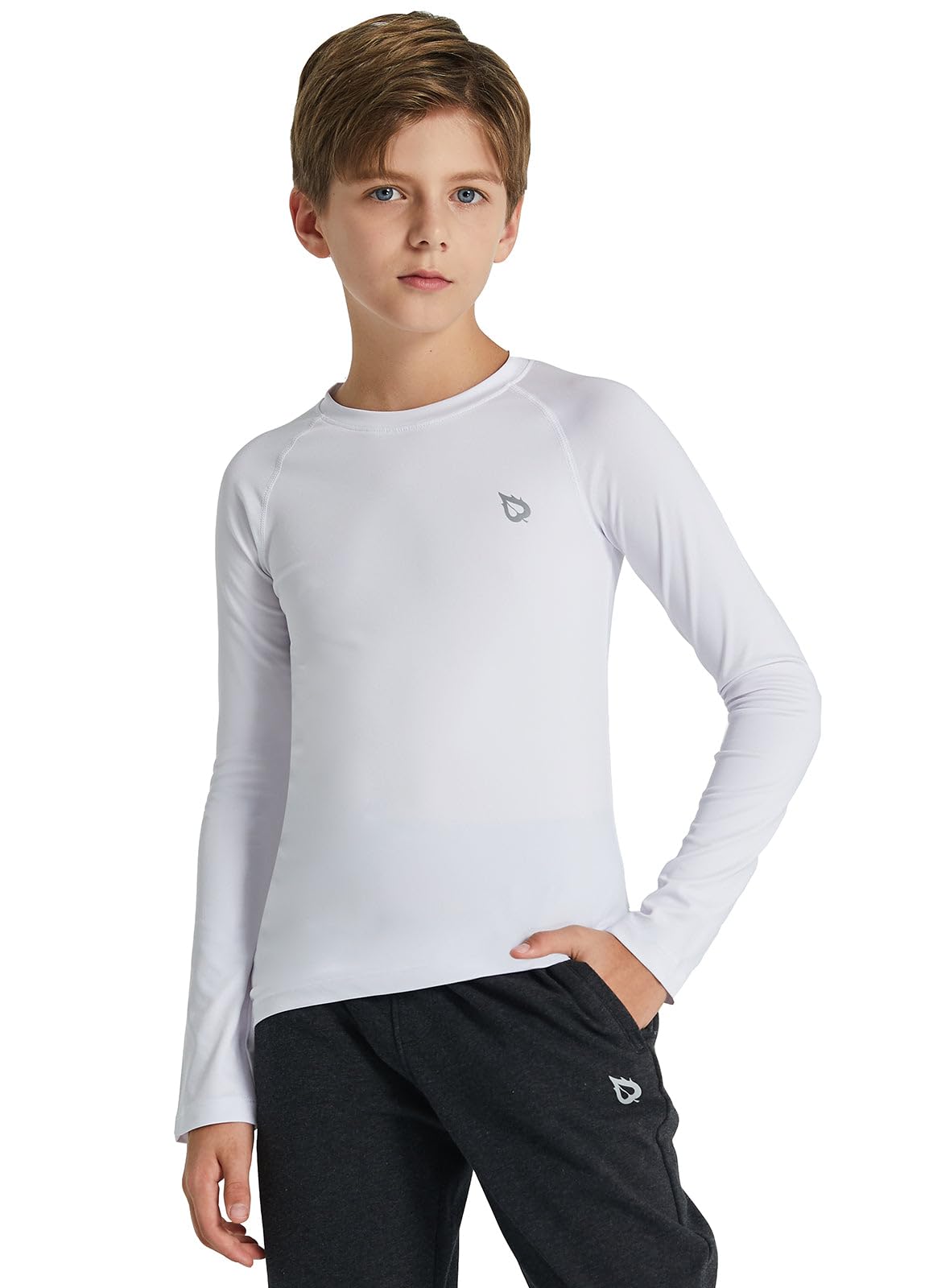 Baleaf Boys Compression Camiseta de manga larga Jóvenes Capotes para niños Fútbol de béisbol Baseball Baselayer Cía frío Tamaño blanco seco XL