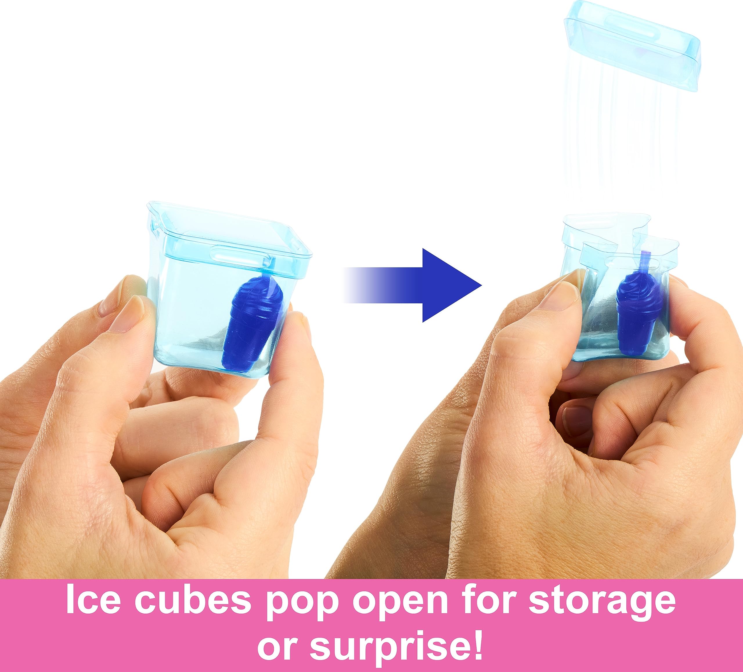 -Discover additional pieces inside the ice cubes that really 'pop' open, like a squishy mini-drink and roller-skates for Barbie doll -- use for storage or repeat reveals!