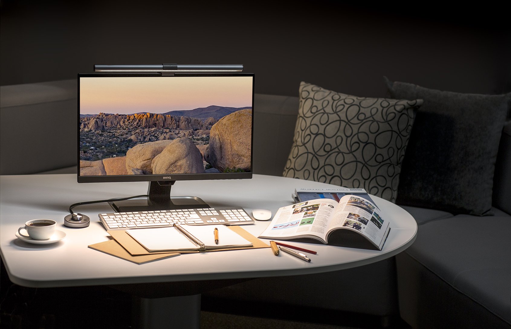 -DESKTOP DIAL: Built-in ambient light sensor in the Desktop Dial enables you with simply one touch for the best brightness level; Let the auto-dimming function do the job. You can also manually adjust the brightness and color temperature any moment. Easy to use with precision. (Remove Protection Sponge Before Using It, Or It Will Impact The Function Of Power On/ Off)