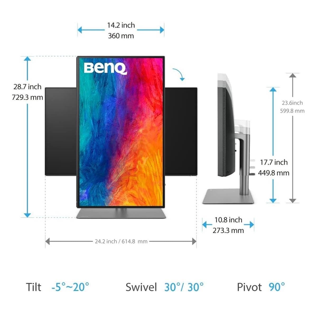 Monitor BenQ PD2725U Thunderbolt 3 para MacBook de 27 pulgadas 4K IPS UHD, AQCOLOR, 100% sRGB y Rec.709, 95% P3, DeltaE≤3, uniformidad, Pantone, calibrado de fábrica, concentrador USB, USB-C de 65 W, cadena tipo margarita, conmutador KVM