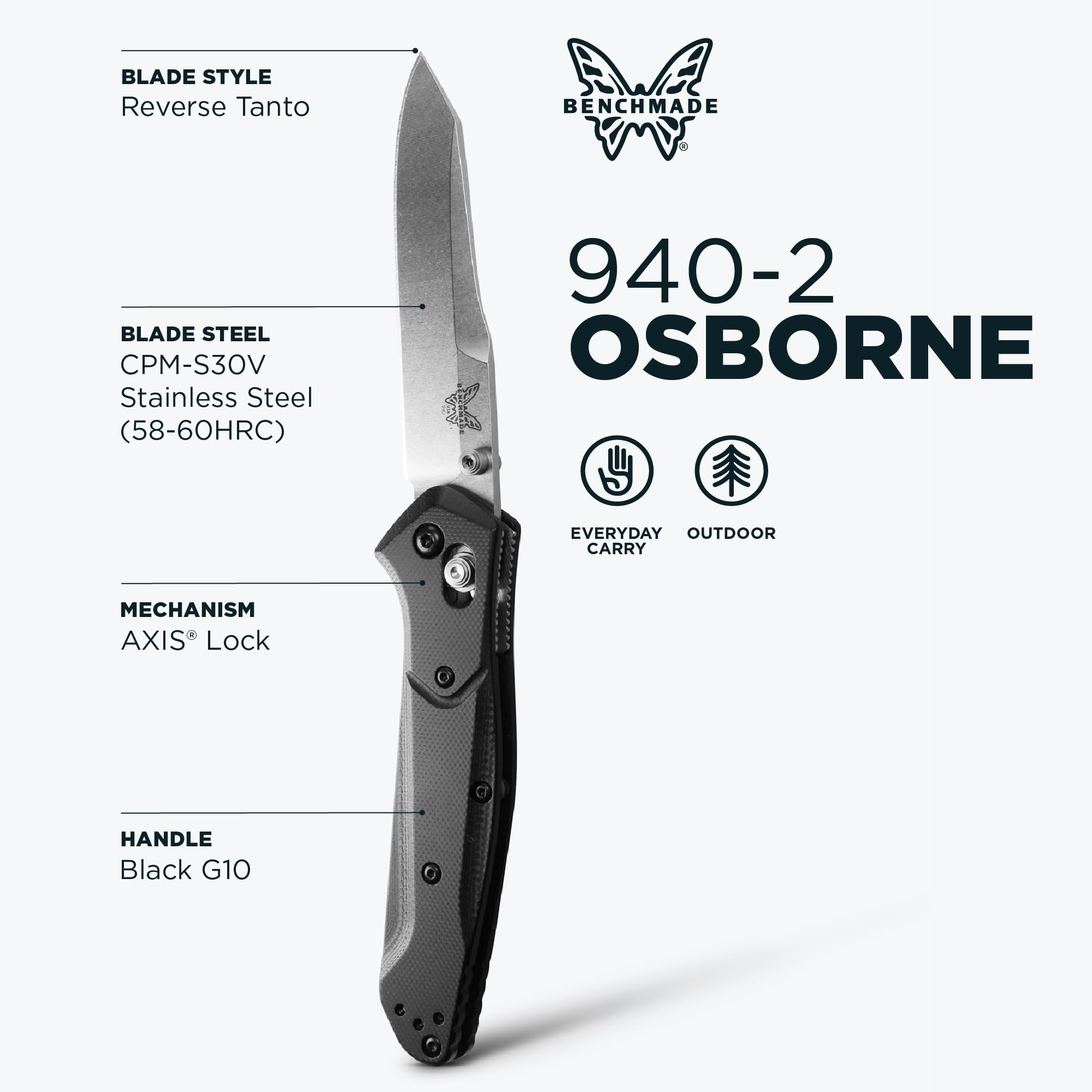 Benchmade - Cuchillo Osborne 940 EDC con mango negro G10 (940-2)