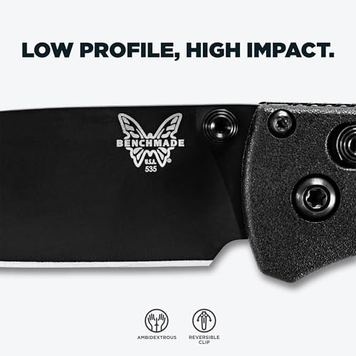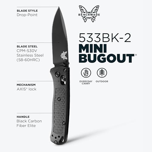 Benchmade - Mini Bugout, exterior, cuchillo plegable EDC, hoja de punto de caída con mango de fibra de carbono negro (533-3)
