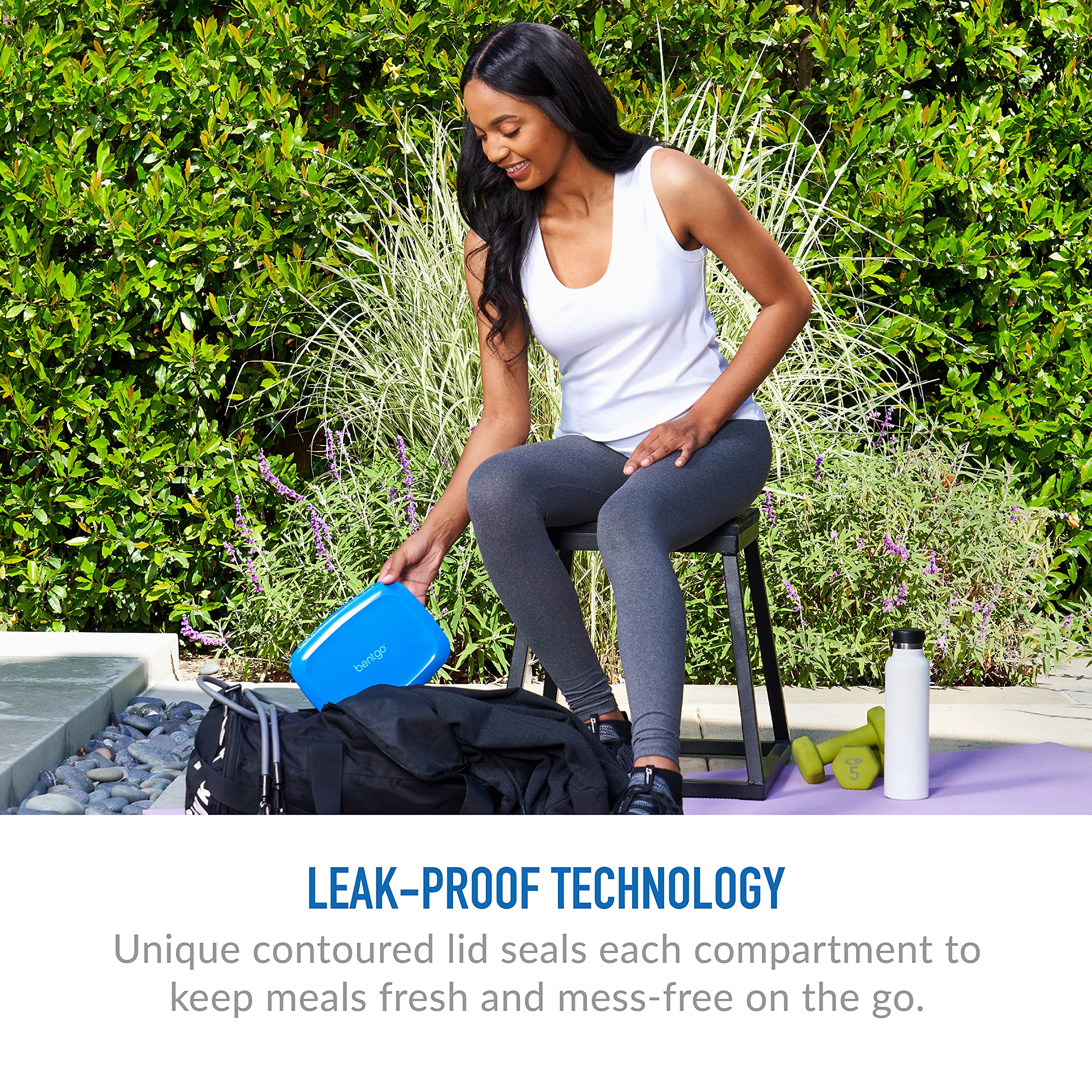 Bentgo Fresh-Caja de almuerzo de estilo bento de 4 compartimentos a prueba de fugas con divisor removible, comidas controladas por porciones para adolescentes y adultos sobre la marcha: materiales seguros a los BPA (azul)