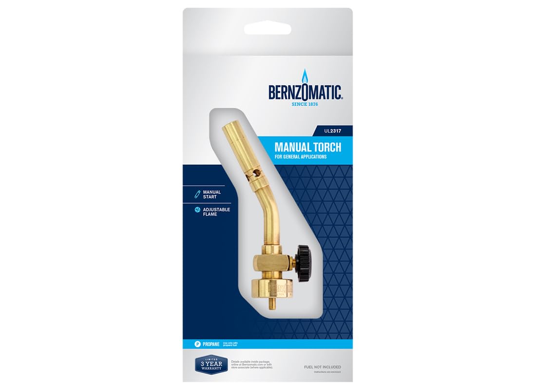Product Description Manual Torch for General Applications From the Manufacturer The Bernzomatic UL2317 Brass Propane Torch Head is a basic pencil flame torch head. The torch produces a 1/2-Inch wide pencil flame for light work. The torch head is constructed from brass for durability.