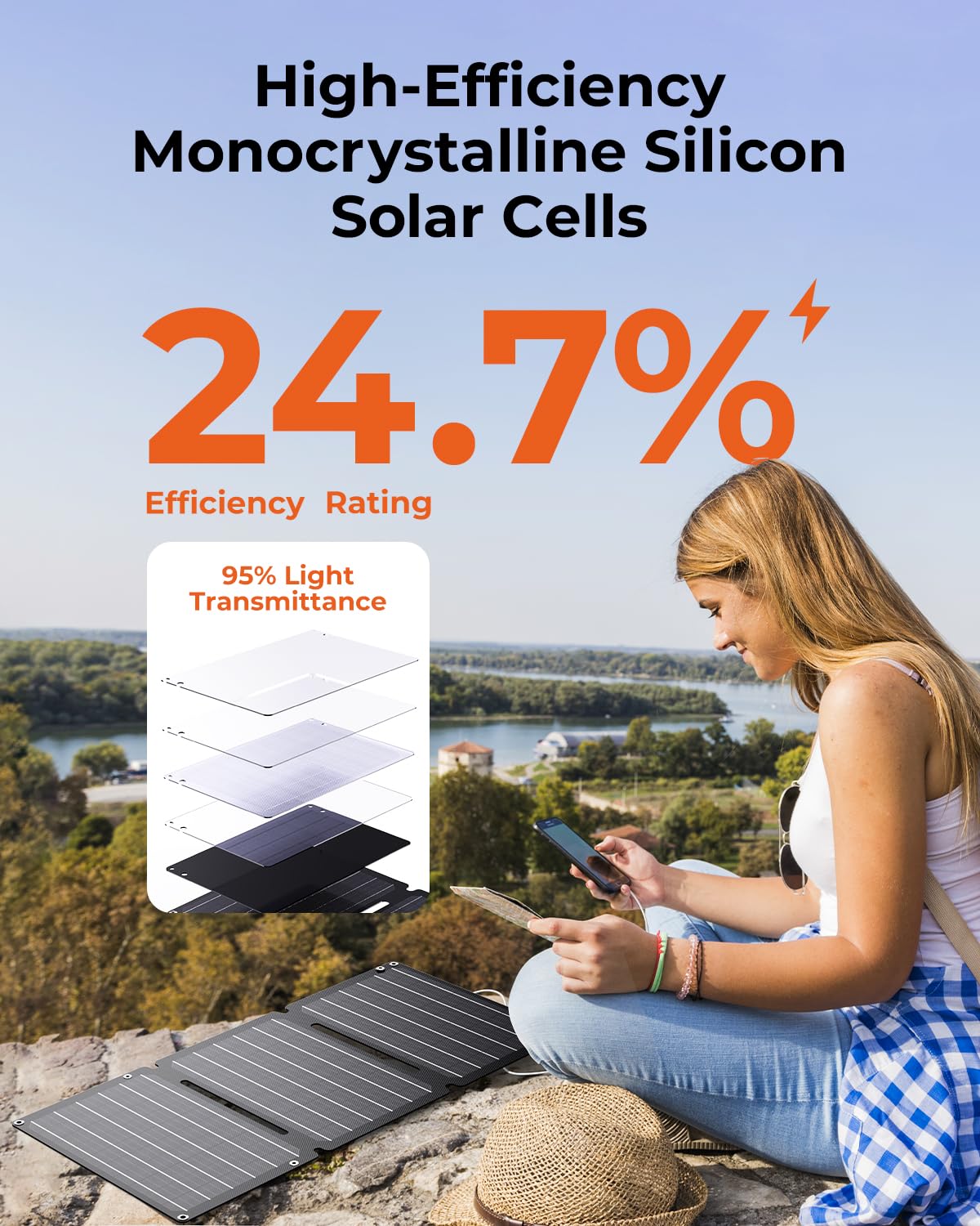-IP68 WATERPROOF LEVEL: Special surface protects this camping solar panel from occasional rain and splashes, ensuring reliable performance in diverse outdoor conditions (The junction box is not waterproof). What you'll get: 30W small solar panels, USB-C to USB-C cable, 2 carabiners, user manual and our superior customer service.