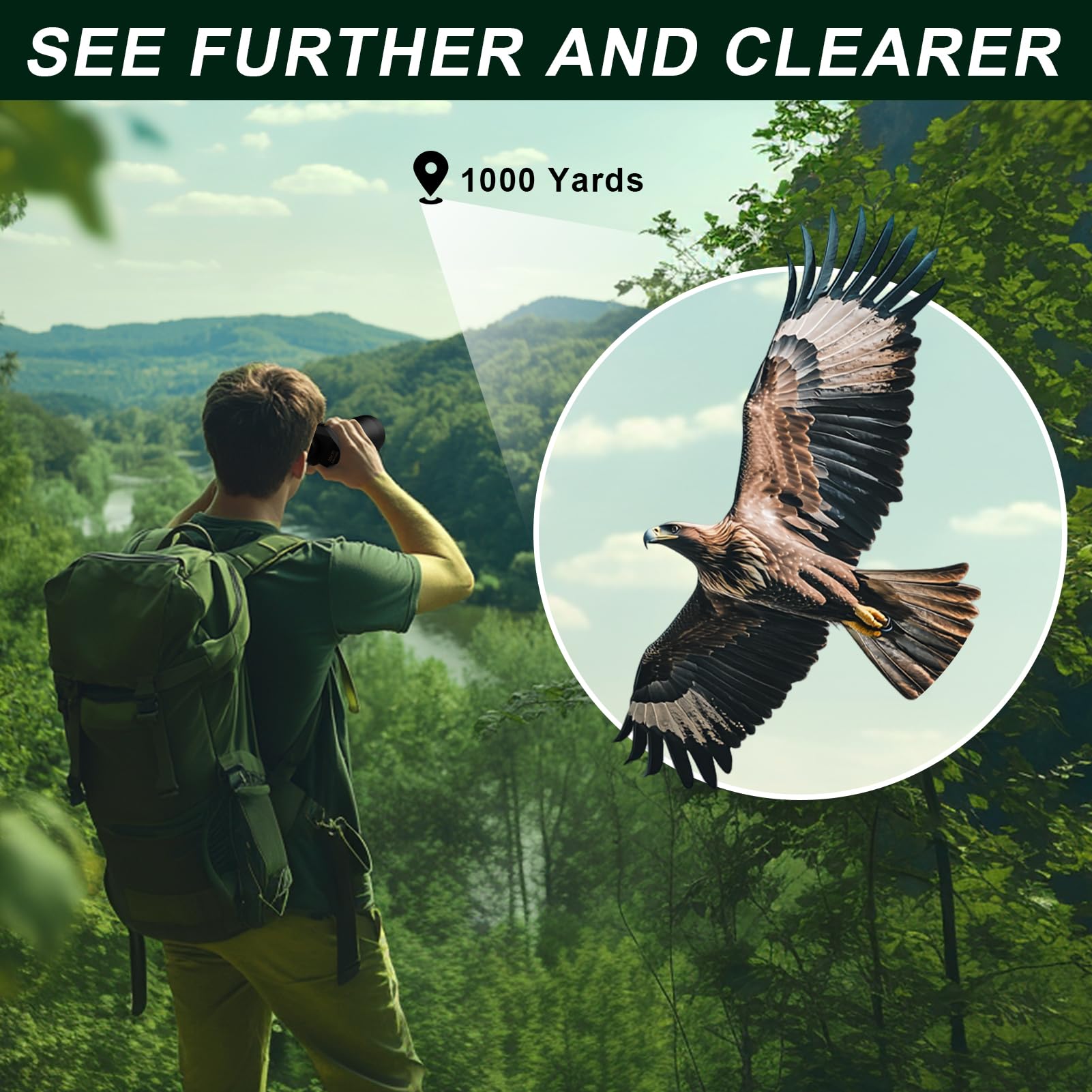 -【20X Magnification Focus Details】Binoculars for adults feature a high magnification of 20x, experience unparalleled clarity and details. The 26mm large eyepiece provides a larger image, sees more comprehensively, and allows you to focus on distant details effortlessly, specially designed for any outdoor explorer.