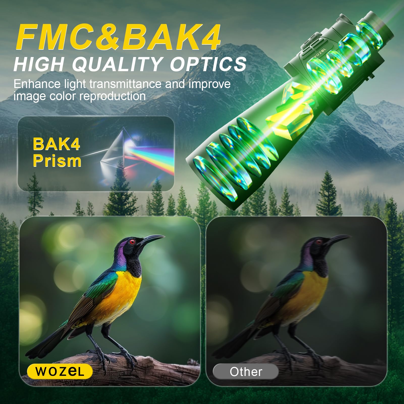 -【HD Optics Improve Image Quality】Binoculars for bird watching Equipped with high-quality BAK4 prisms and fully multi-coated (FMC) optics, these binoculars provide excellent image quality with realistic color reproduction and clarity. At the same time, prevent glare and protect your eyes.