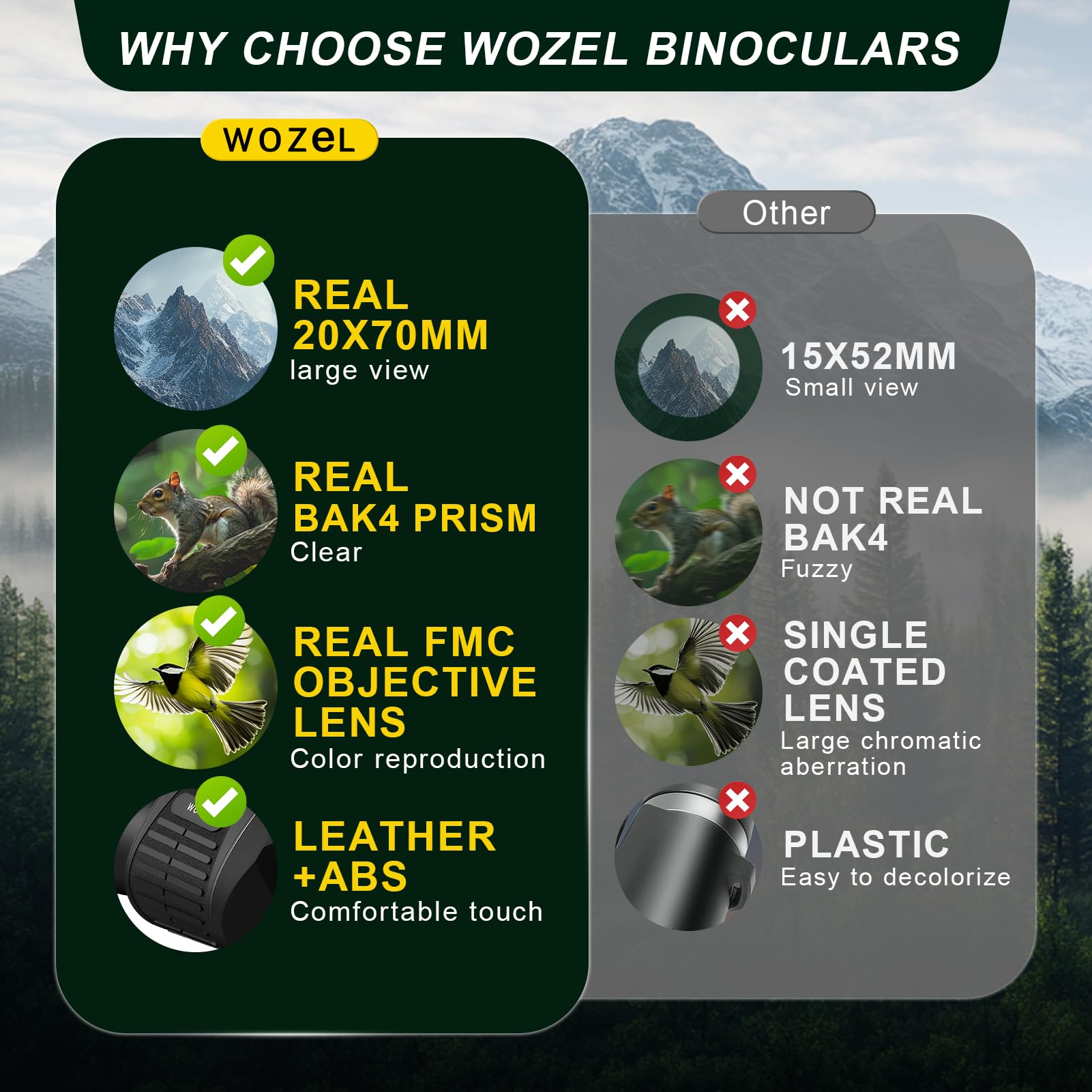 Binoculares 20x70 para adultos de alta potencia - Binoculares para pájaros WOZEL HD con visión clara con poca luz - Potentes binoculares para observación de aves, caza, viajes, senderismo al aire libre - Regalos de cumpleaños de Navidad para hombres