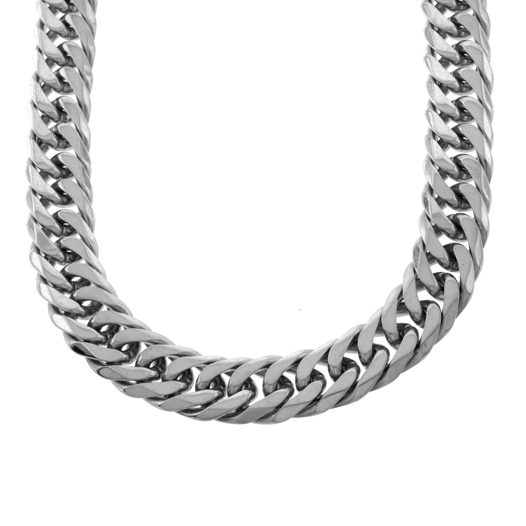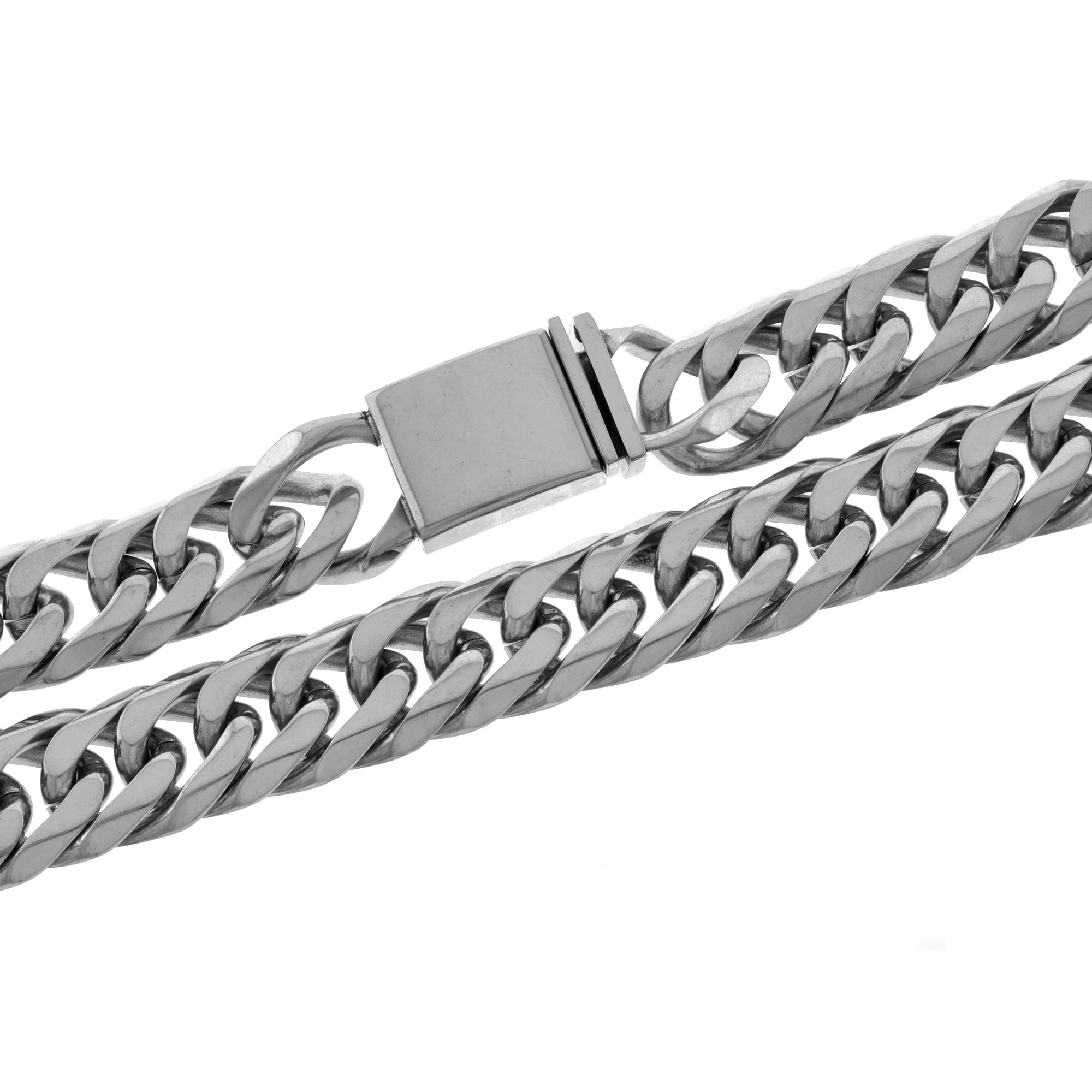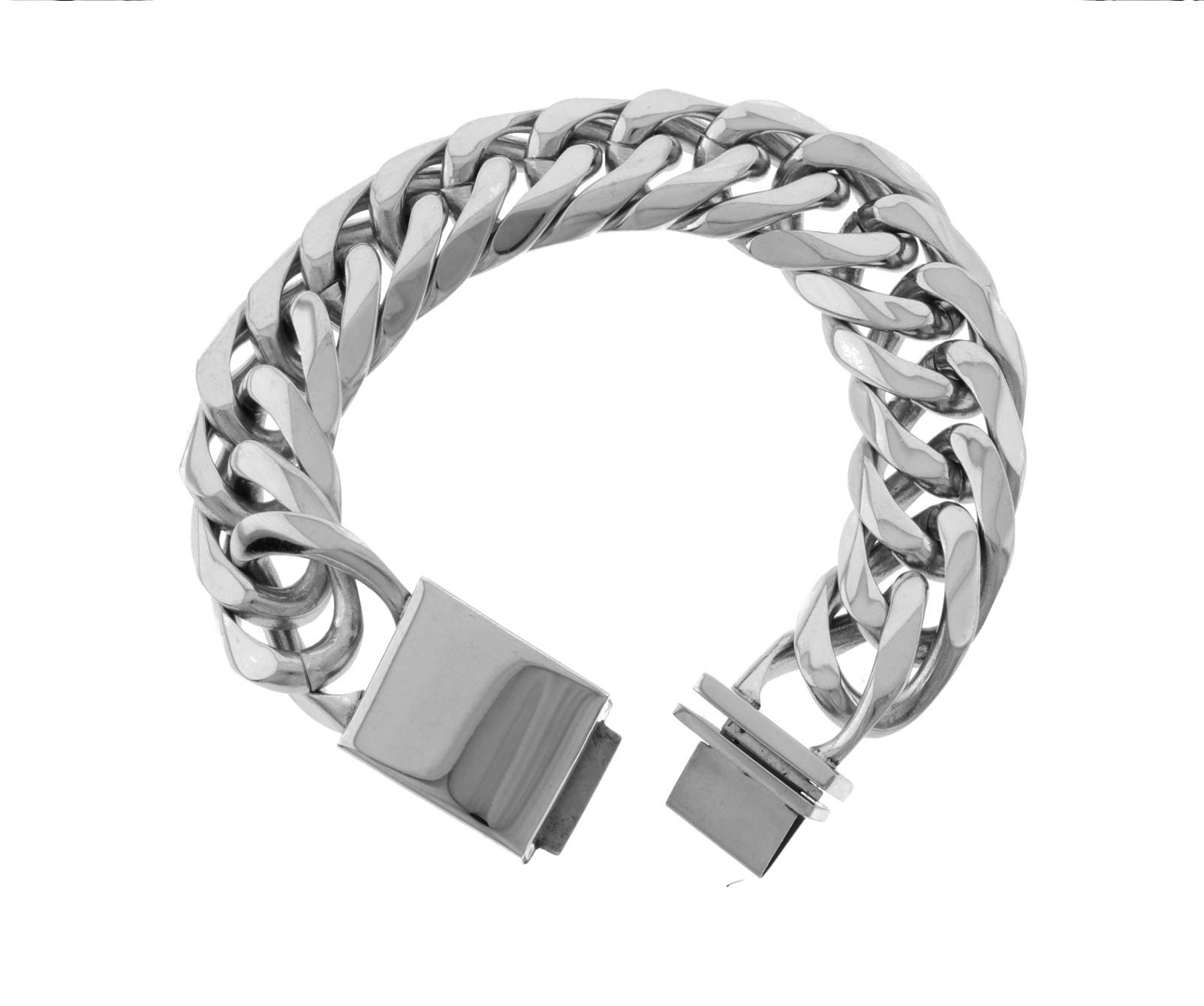 Bling Bling NY Juego de pulsera y collar de cadena de eslabones cubanos de Miami de acero inoxidable con acabado en plata maciza de 21 mm de grosor