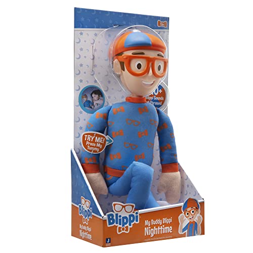 Blippi Nighttime Feature Plush, incluye 16 pulgadas Nighttime Feature Plush con 11 sonidos y frases únicos