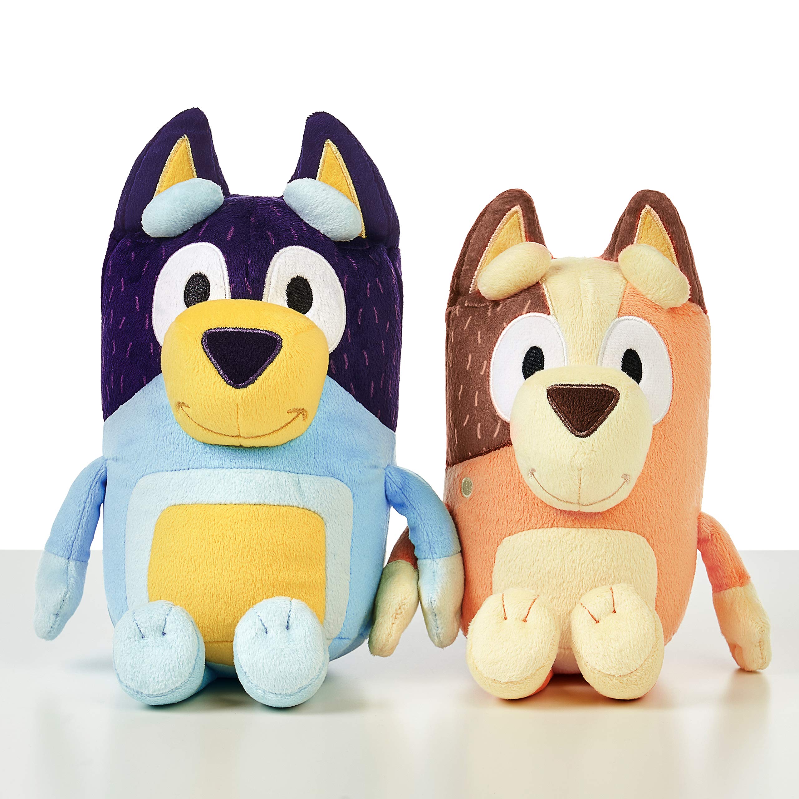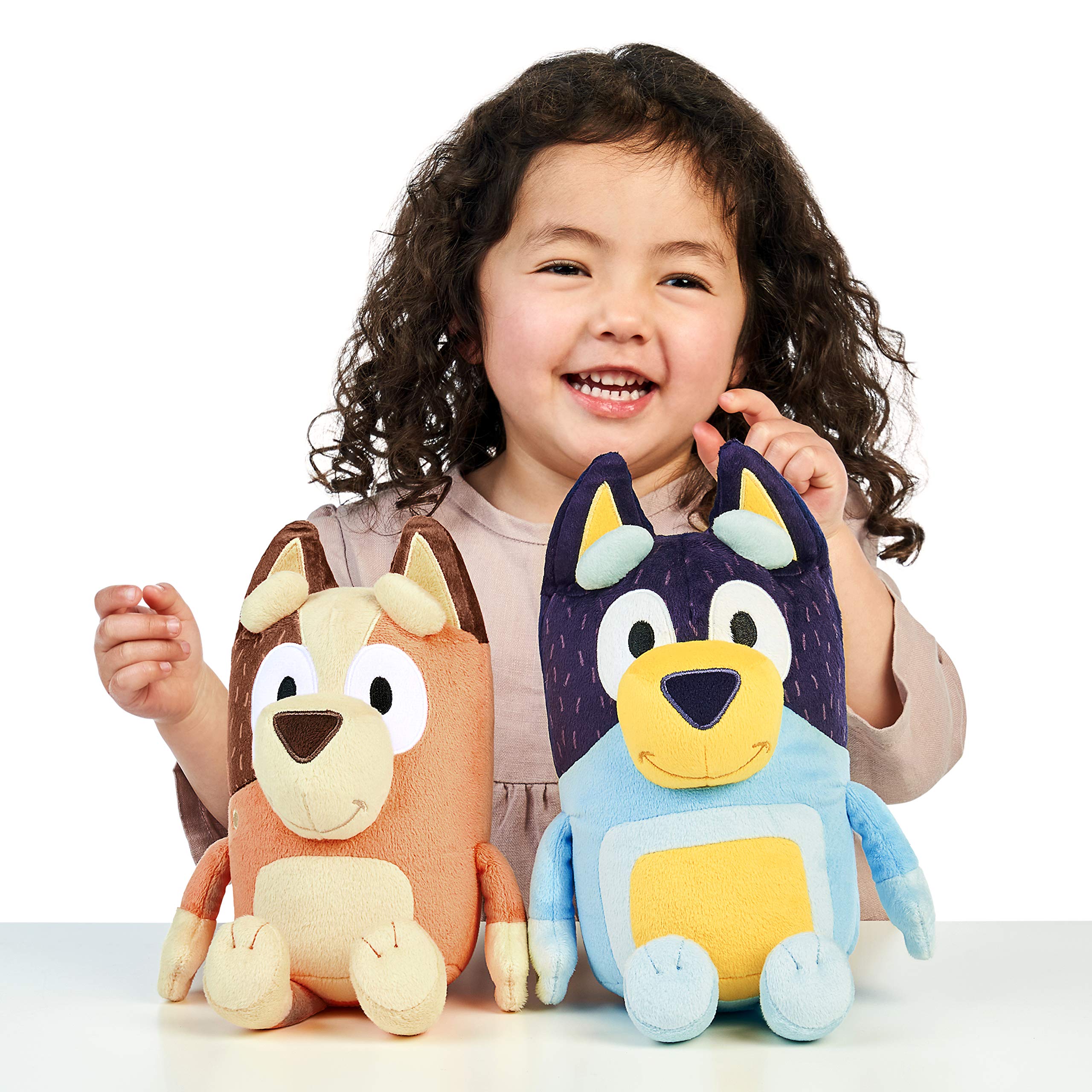 Meet Bluey! A loveable, six-year-old Blue Heeler dog, whose everyday family life becomes a playful adventure.Bring the fun and imaginative play home with the softest plush toys! Children will love using these soft and cuddly toys to create their own show or as a snuggly bedtime story companion.This pack contains both Bluey and Bingo's Mum (Chilli) and Dad (Bandit). Made with deluxe soft fabrics and detailed embroidery. Big, cuddly and ready to hug!