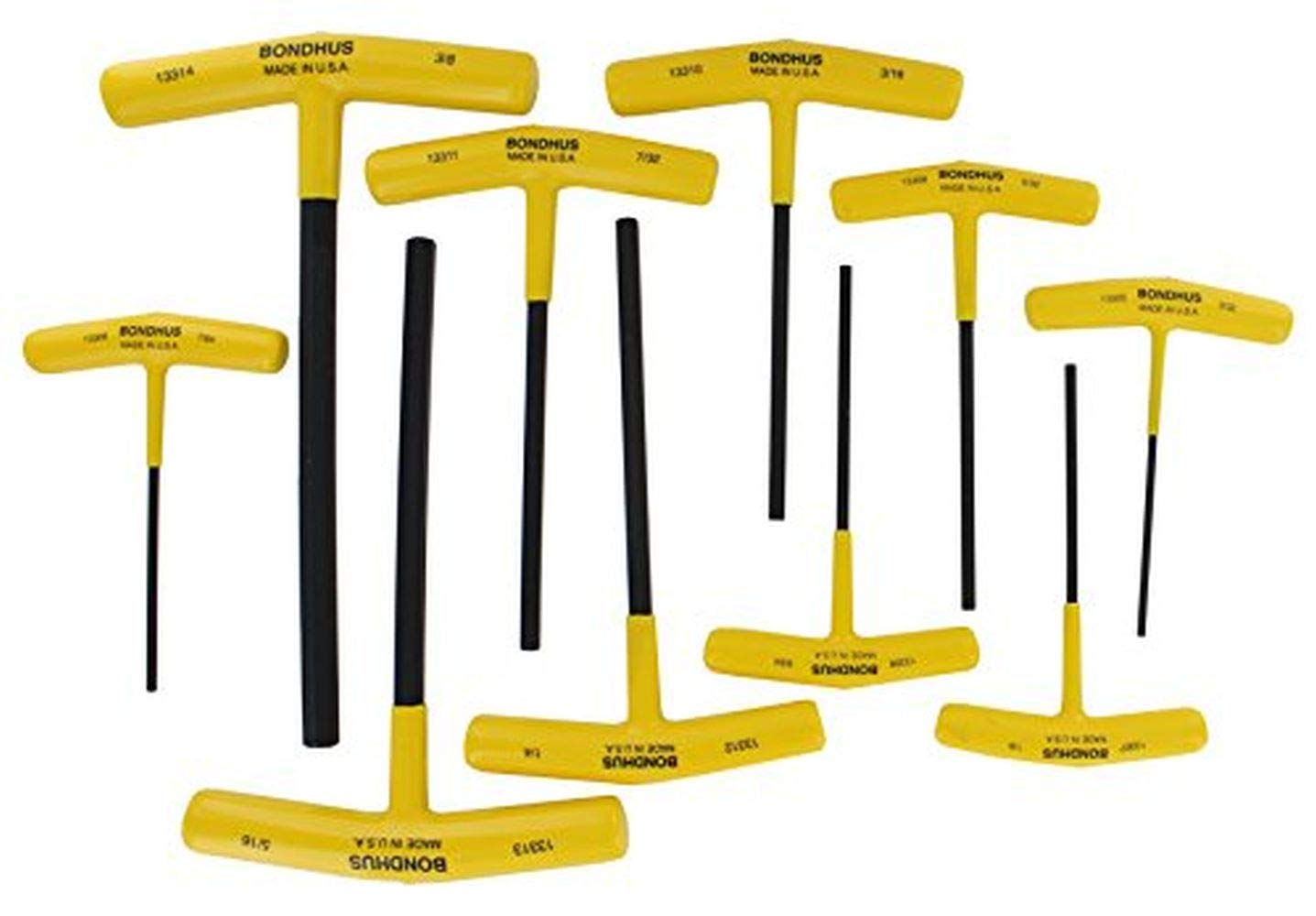 Hex T-handles feature welded steel handles with cushion grips sized for maximum torque while protecting the hex tip and screw from rounding or stripping. The cushion grip handle is ergonomically shaped eliminating pressure points. The heavy duty handle generates flywheel effect for fast insertion and extraction of screws. Comes with a molded stand that mounts on the wall or work bench. Only available from Bondhus, Protanium® steel means these are the strongest tools available.
