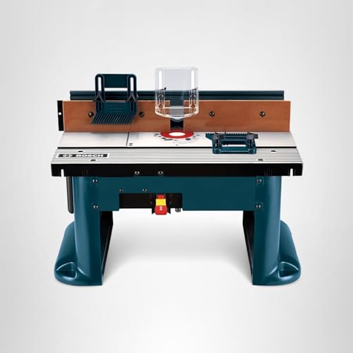 The Bosch RA1181 benchtop router table provides a large work surface for precision and versatility. The large aluminum top makes the table both durable and portable. Designed to fit a variety of routers, this router table is a versatile piece of equipment that will serve as an indispensable part of any woodworking shop. Its rigid aluminum router mounting plate is pre-drilled for compatibility with a variety of routers and for above table height adjustment with many common routers. Its 2-1/2 In. dust-collection port offers better dust collection for a cleaner work environment. This benchtop router table includes mounting hardware, features a tall aluminum fence with adjustable MDF faceplates, two outfeed shims, and an aluminum router mounting plate. The starter pin and guard for routing curved workpieces is also included, in addition to the built-in cord wrap for convenient storage and portability.