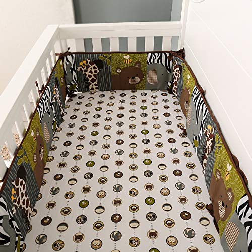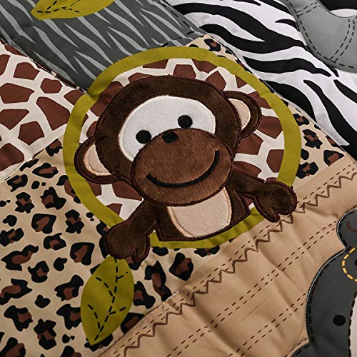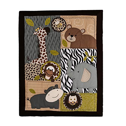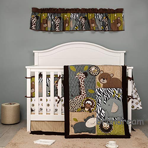 Brandream Jungle Crib Juegos de cama para bebés, niños, elefante, animal, zoológico, guardería, juego de cama, cebra, jirafa, mono, hipopótamo, búho, oso, patrón 3D, 7 piezas, algodón