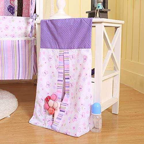 Brandream - Juego de cama para cuna con mariposa, color morado, para niñas, ropa de cama floral para guardería, rosa y morado, 9 piezas