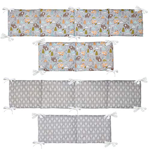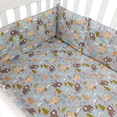 Brandream Ropa de cama para bebés y niños Woodland Cuna Juegos de cama Bear Fox Arrow Juego de cama para guardería Gris 11 piezas, 100% algodón hipoalergénico