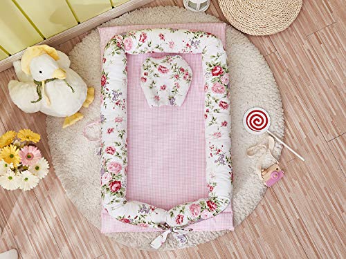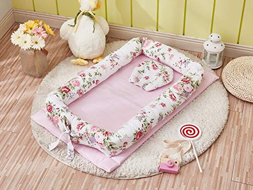 Brandream Design - Cama nido para bebés, color rosa, doble cara, cuna portátil, cama para dormir, nido para acurrucarse, capullo para recién nacidos, tumbona para bebés / positoner / maceta, colección floral