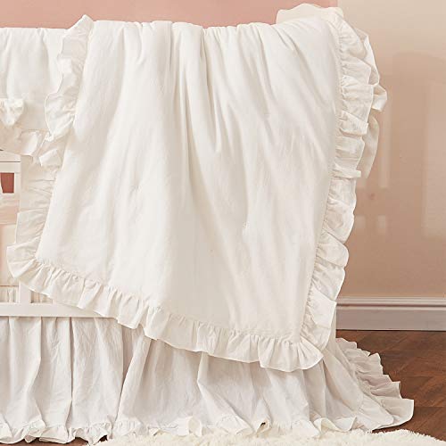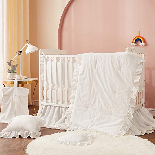 - Make sure this fitsby entering your model number. - 100% Washed Cotton - PREMIUM COTTON BENEFITS: 100% White Washed Cotton Baby Bedding Set choose 100% cotton fiber as a natural material to make baby bedding more breathable - Ensure your baby feel warm in chill weather and cool in warm weather by absorbing moisture to adjust your climate of comfort all season during your sleep unlike regular polyester covers make your baby feel sweaty - EASY TO CARE: No ironing needed. Machine washable. Comfort baby bedding becomes softer after every wash. The features of the washed cotton fabric are a great strength and durability. RESISTANT TO SHRINK, FADE AND TEAR, tough enough to withstand frequent washer and dryer cycles - WHAT YOU CAN GET: 3-piece set inludes baby comforter, crib sheet, white dust ruffle with 16" drop. - WONDERFULComforter with ruffle design, expertly stitched by hand and hand-tufted. HIGH-QUALITY and DELICATE. - MAGICALCrib Bed Skirt is 4-side, fits around the entire crib and is tailored with split corners for easy placement around posts. WHIMSICAL and ETHEREAL. - COZYCrib fitted sheet has elastic around the entire edge for added safety. - UNIQUE DESIGN We use solid cream white color baby bedding design to return to simplicity, not only make your baby feel more relax and comfortable life, but also match a variety of decoration styles. No need to worry about matching. Delightfully crinkly bed linen that wont fade. You don't have to worry about it wrinkling because it's supposed to be wrinkled! - BESTIts' amazing and elegant, charming and fun. Oh, it's extremely beautiful! Great match with any home decorationOpen dynamic new journey to sleep.