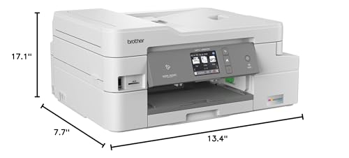 The Brother MFCJ995DW Investment Tank color inkjet all-in-one printer with tank technology is the optimal choice for your home or small office needs. It features reengineered Investment Tank cartridges along with an internal ink storage tank that delivers uninterrupted printing for up to 1-year without the need to purchase ink(1). Business-capable features include mobile device printing(3), Near Field Communication (NFC) print and scan(4), and easy onscreen navigation using the 2. 7" color touchscreen Brother Investment Tank color inkjet all-in-one printers help solve two major printing challenges -unexpectedly running out of ink and having to replace ink soon after purchasing the printer. Brother Investment Tank all-in-ones help take the guesswork out of when to replace ink by using the Brother intelligent Page Gauge(2), a visual, numerical way to know the amount of ink you've used and the amount you have remaining. No more running out of ink in the middle of an important or time-sensitive print job. Investment Tank models monitor actual ink usage and display your estimated remaining page counts to give you increased visibility, so you can print with confidence and virtually without interruption. (1)Based on average monthly print volumes of approximately 150 pages at 60% black pages / 40% color pages in accordance with ISO/IEC 24711 using 4 cartridges provided in-box. For more page yield information, see manufacturer's website. (2)Page Gauge is an estimate for informational purposes only. For actual cartridge yield information refer to manufacturer's website. (3)Requires connection to a wireless network. (4)The mobile device must have NFC capability and run Android OS 4. 4 or later. (5) Based on MSRP of LC3035 black and color ink cartridges and approximate page yield in accordance with ISO/IEC 24711. For more page yield information, see manufacturer's website. (6)Requires an Internet connection and an account with desired service. (7)Requires internet connection. (8)Reprinted from Puma with permission. Copyright 2017 Ziff Davis, All Rights Reserved. (9)Based on average monthly print volumes of approximately 300 pages (70% black pages / 30% color pages) and approximate page yield in accordance with ISO/IEC 24711 using 12 cartridges provided. (9) Based on average monthly print volumes of approximately 300 pages (70% black pages / 30% color pages) and approximate page yield in accordance with ISO/IEC 24711 using 12 cartridges provided. (10)Based on average monthly print volumes of approximately 300 pages at 60% black pages / 40% color pages in accordance with ISO/IEC 24711 using 4 cartridges provided in-box. For more page yield information, see manufacturer's website. (11) Based on ISO/IEC 24734 (after first set of ISO test pages). For inkjet print speed methodology, please visit manufacturer’s website. (12) Approximate page yields in accordance with ISO/IEC 24711. Operating Temperature: 50-95° F.