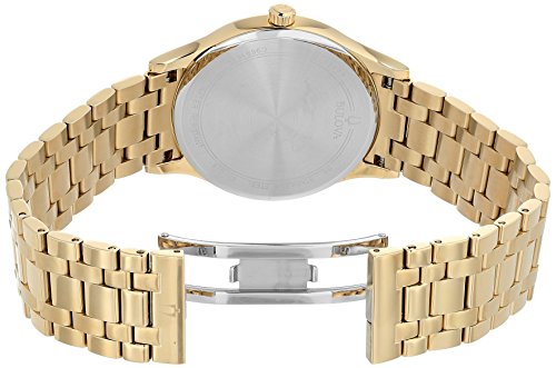 BULOVA Classic Gold Tone de acero inoxidable de acero inoxidable Reloj de cuarzo de cita con diamante negro estilo: 97d108