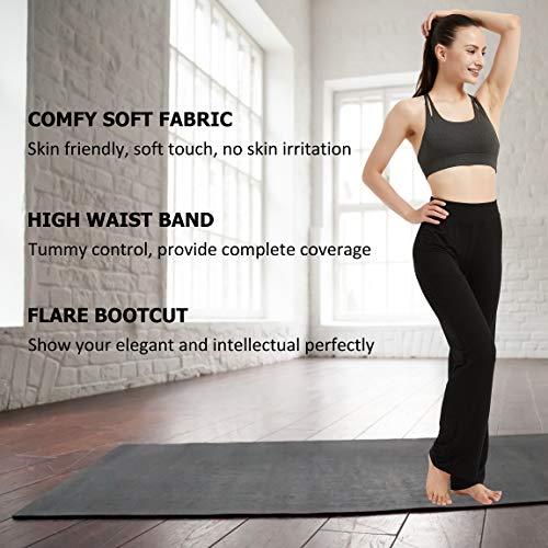 - HIGH WAIST for TUMMY CONTROL : For purpose of your tummy control without producing a muffin top. High-rise waistband, 4 ways stretch and reinforced on this flare workout pants are designed. Ultra-supportive, less rubbing and chafing.