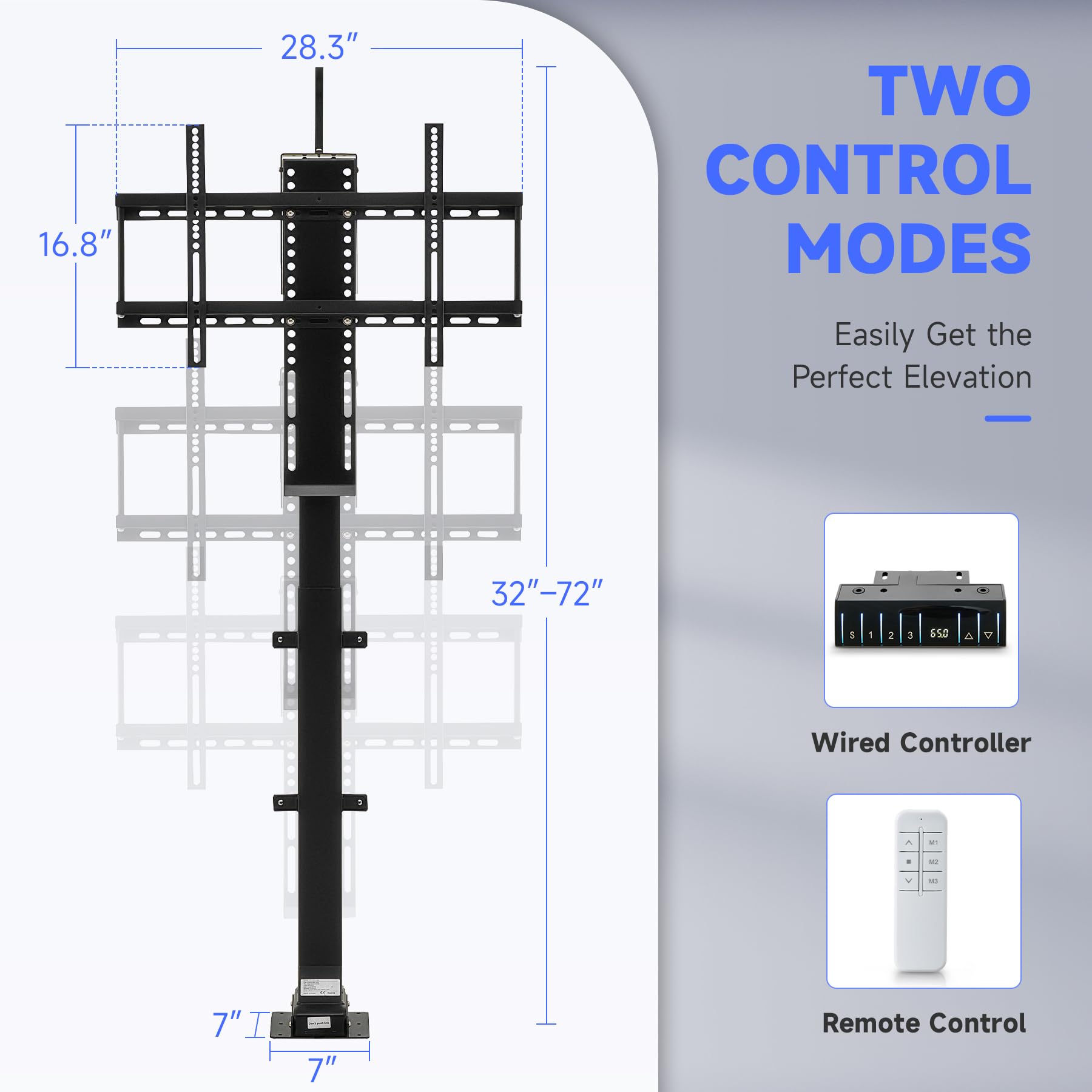 -SUPERIOR HEIGHT RANGE: Our TV bracket quickly rises to heights from 32" to 72" at 1 inch per second, so that you can always find the perfect angle from anywhere in your bedroom, living room, or other space.