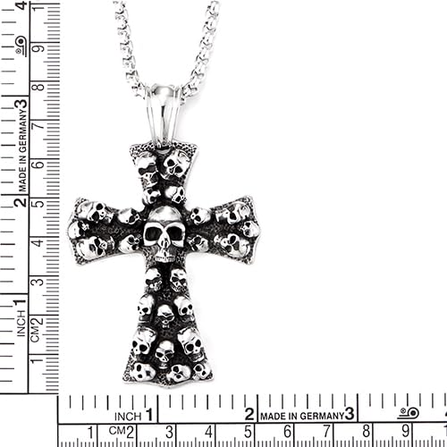 -Detailed Artisan Gothic Craftsmanship: The features a highly detailed cross pendant adorned with multiple meticulously sculpted skulls for a bold, antique look. The artisan focus on the blackened, oxidized finish highlights every contour, providing a rugged aesthetic perfect for gothic and alternative fashion enthusiasts.