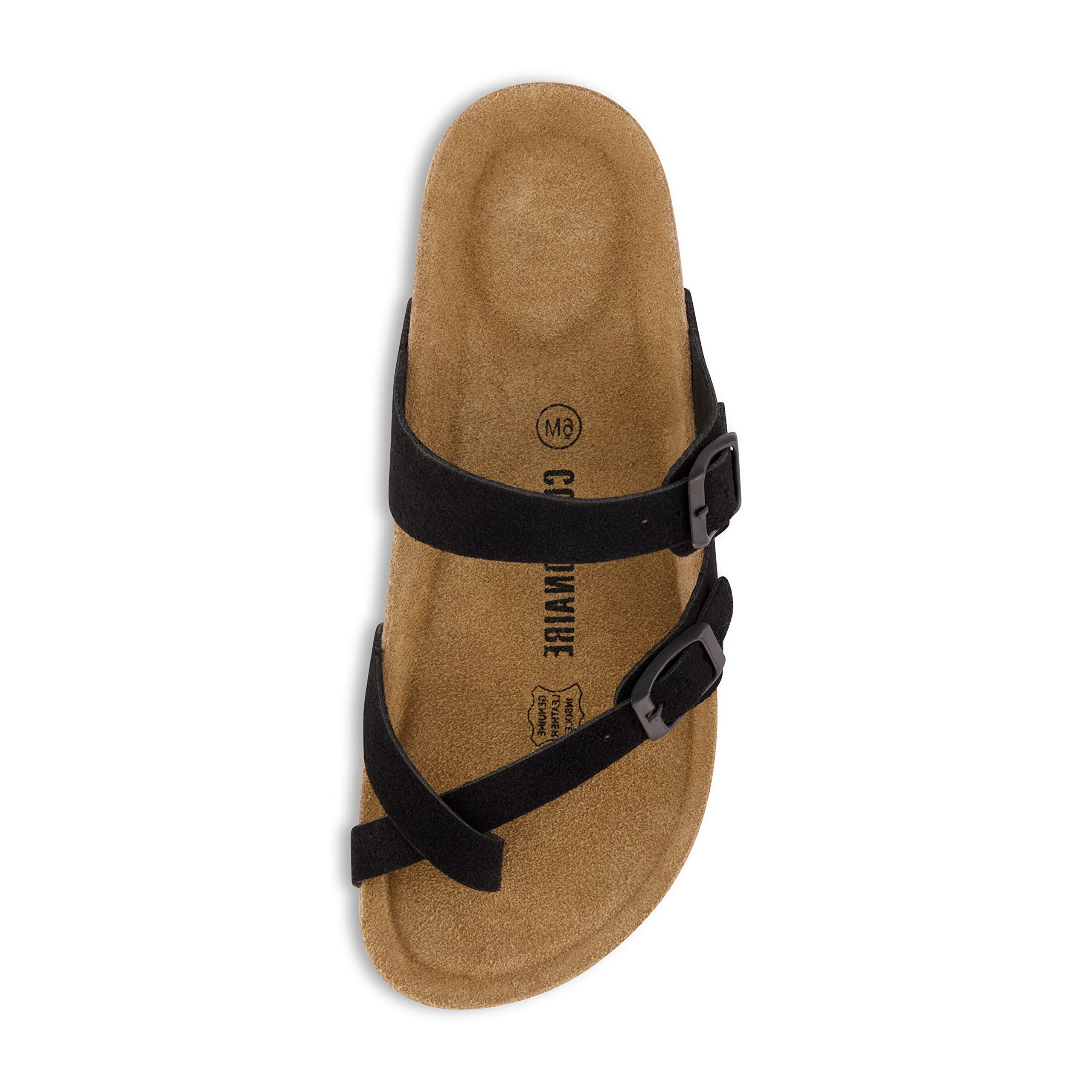 CUSHIONAIRE Luna Sandalias cruzadas con correa para el dedo del pie - Sandalias con plantilla de corcho y correas ajustables, sandalias de verano para mujer 2025, NEGRO 8