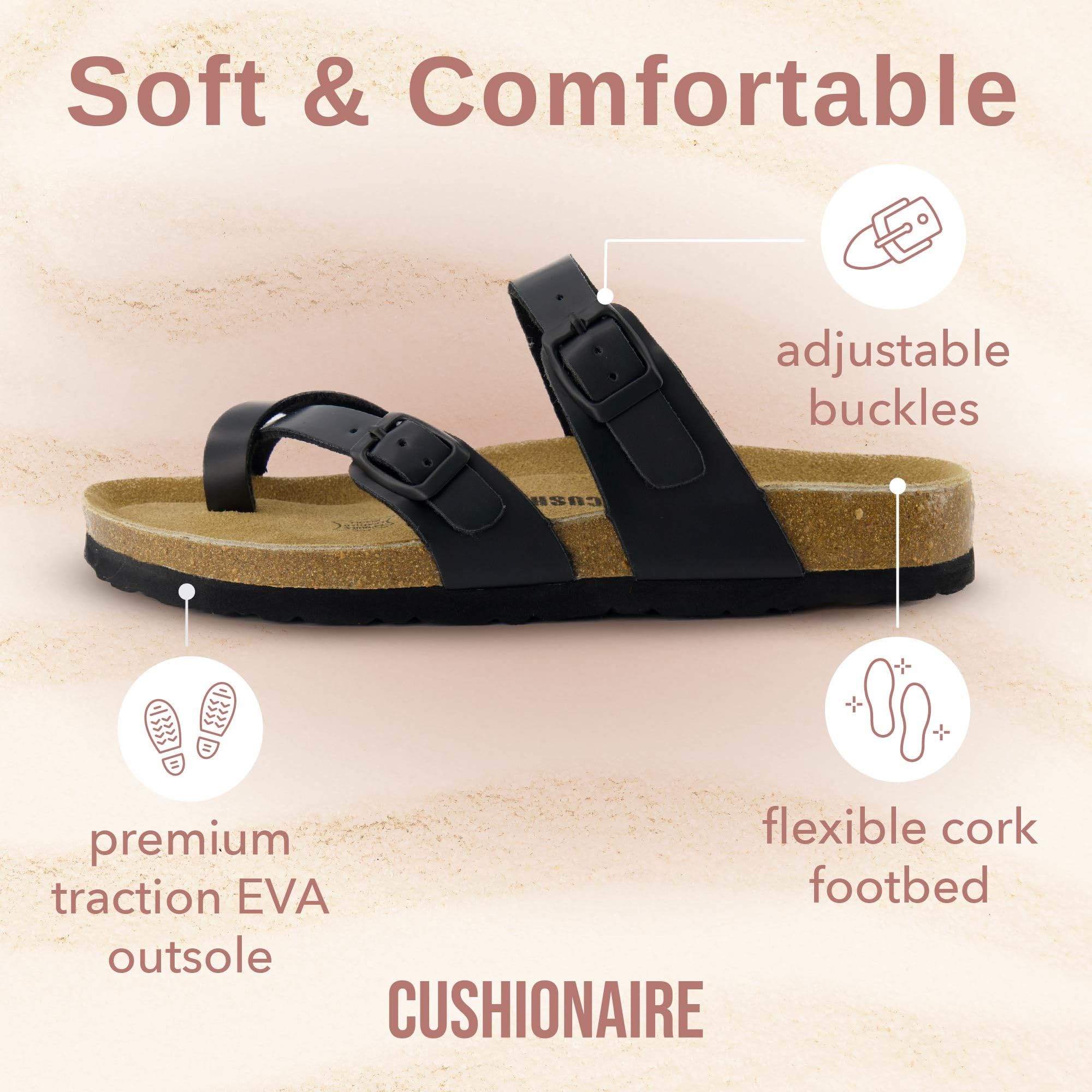 Cushionaire Luna Crossover Santals para mujer Sandalias para mujer - Toboganes de placa de corcho con correas ajustables, sandalias de verano para mujeres 2025, negro 8W