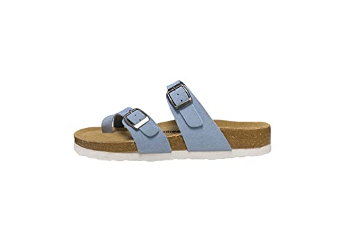 CUSHIONAIRE Sandalias con plantilla de corcho Luna para mujer con + Comfort, ante azul vegano 8 CUSHIONAIRE Sandalias con plantilla de corcho Luna para mujer con + Comfort, ante azul vegano 8