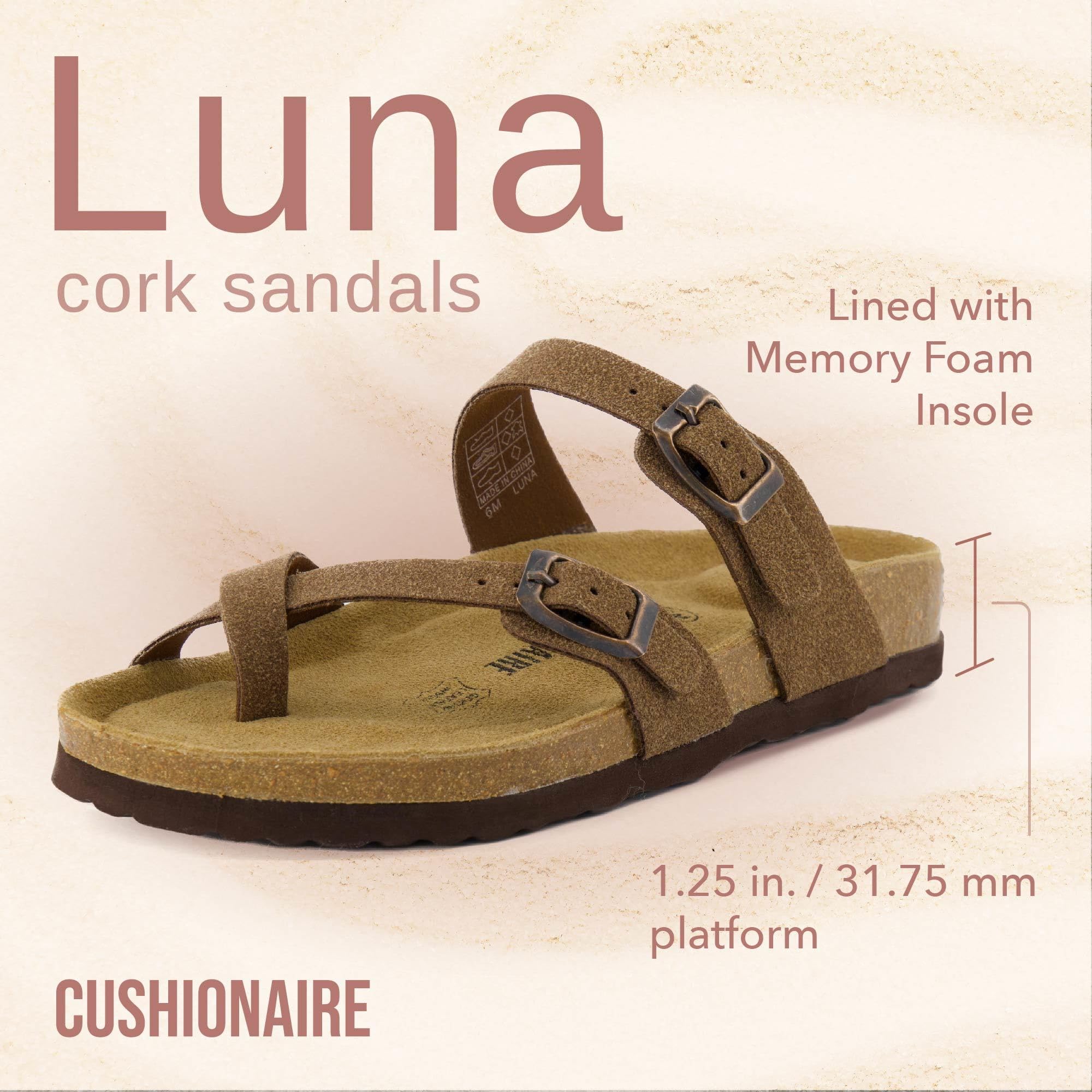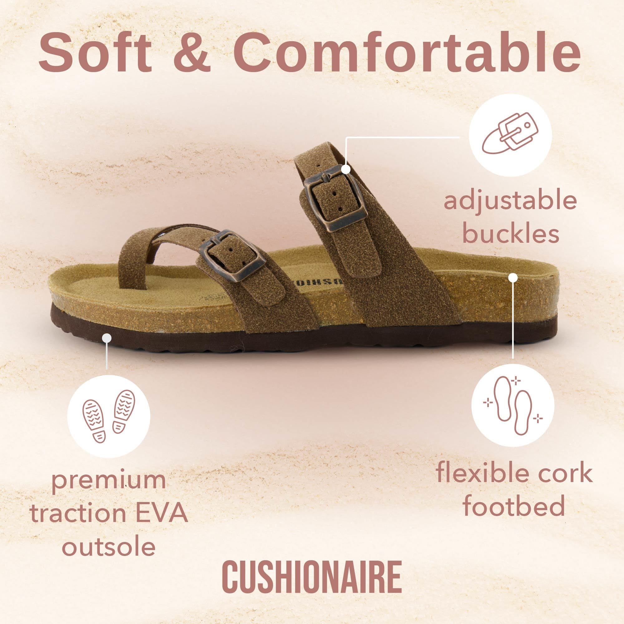 CUSHIONAIRE Luna Sandalias cruzadas con correa para el dedo del pie - Sandalias con plantilla de corcho con correas ajustables, sandalias de verano para mujer 2025, MARRÓN 8W