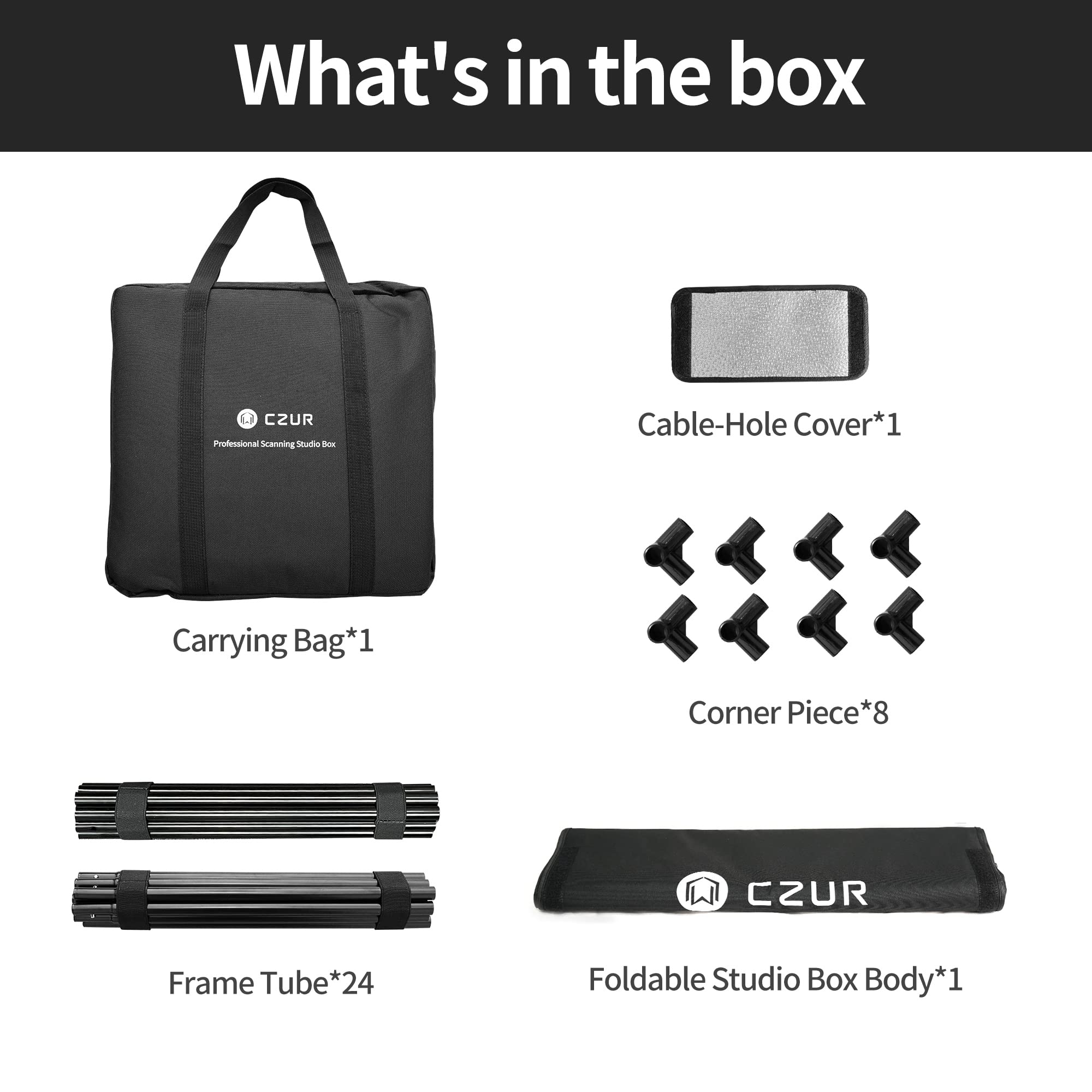 -Portable and Easy set up: CZUR Studio Box can be easily assembled and disassembled and comes with a travel bag for space-saving and traveling