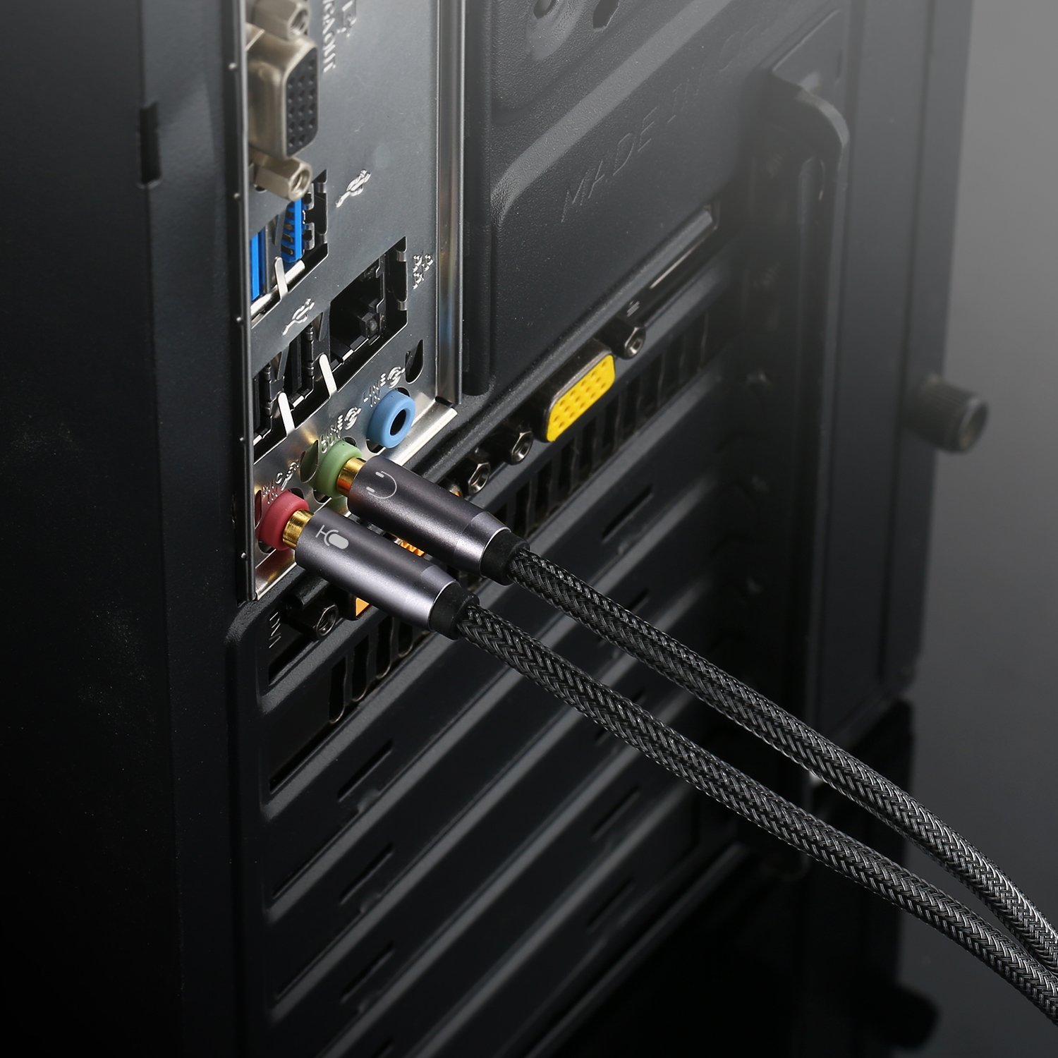 -Focus On Pure Essentials: 24K gold-plated contacts, pure metal housing, triple shielding jacket, strong nylon-braided exterior, secure-fit design, and oxygen-free copper wiring, every single detail we made uniquely is to ensure to present the best quality of 3.5mm Audio Splitter Audio Cable in the market. The sound quality provided by this cable is a thing of magnificence which translates to squeaky-clean sound quality and seamless transmission.