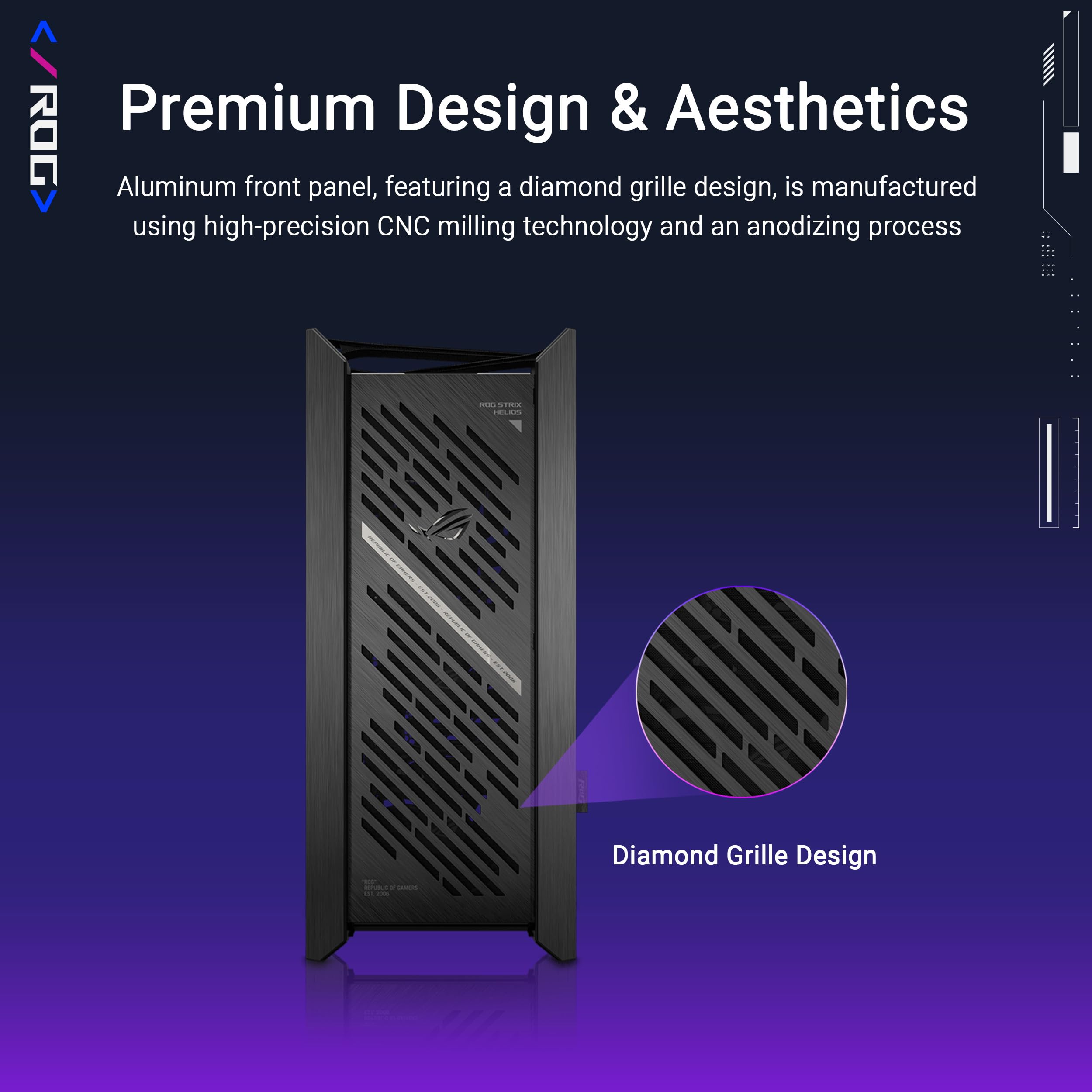 -Premium design: The Helios II is made for showcase builds, with aluminum front panel featuring diamond-grille design and 3D-structured filter to support effective cooling