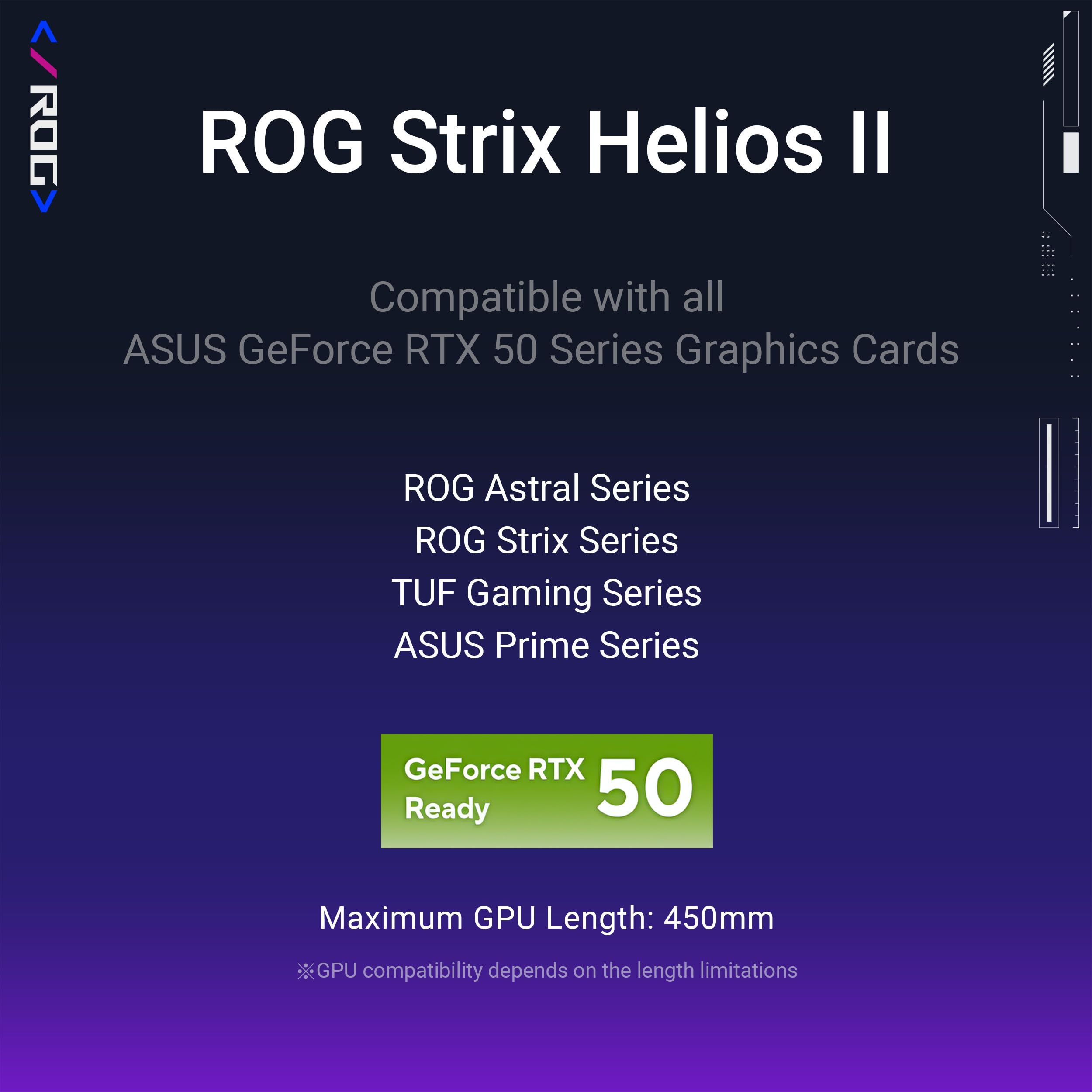 Caja de PC para juegos ASUS ROG Strix Helios II EATX de torre media, con paneles laterales dobles de vidrio templado, soporte para tarjetas gráficas de hasta 450 mm de largo, soportes para tarjetas gráficas y soporte para radiadores de hasta 420 mm