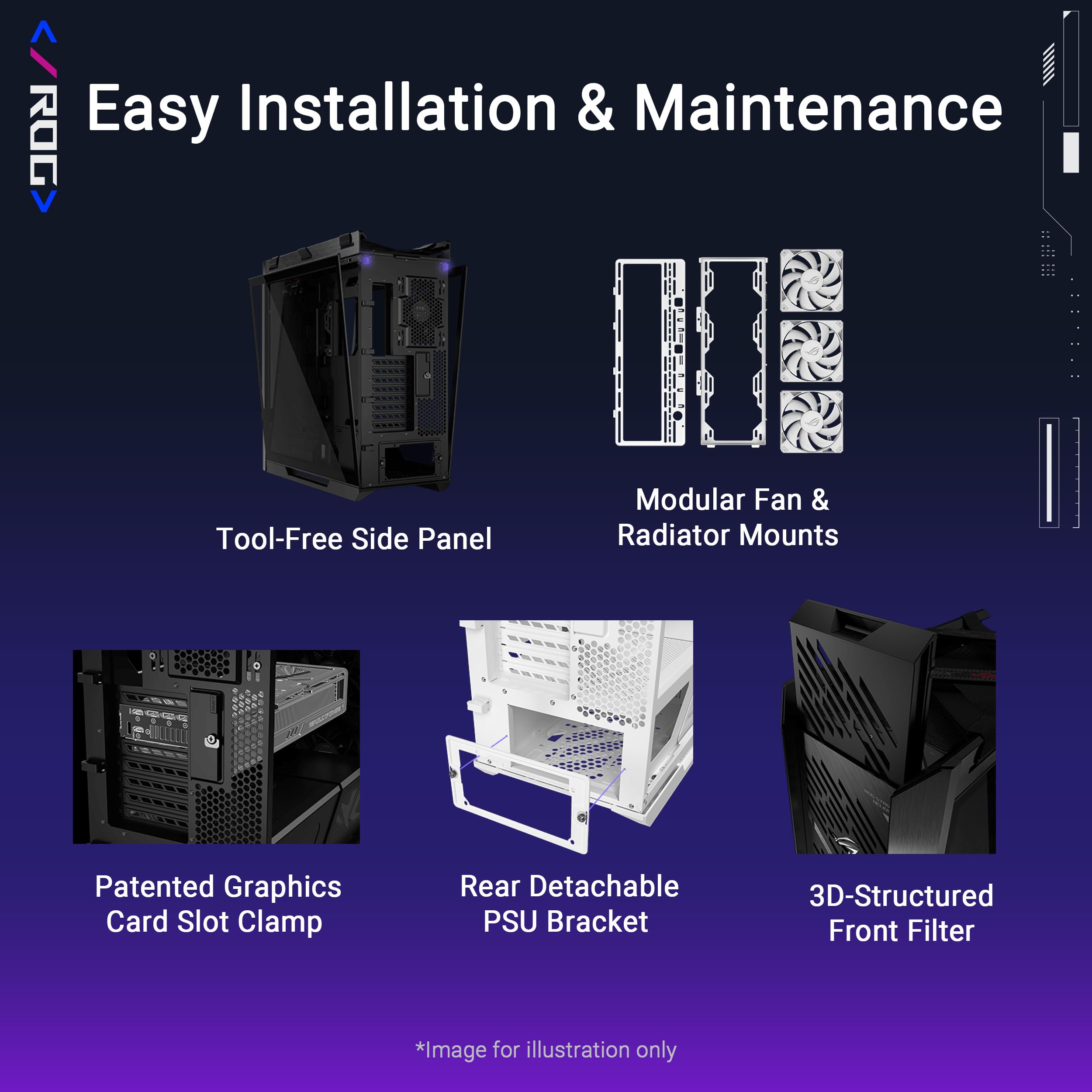 -Ready for the DIY experience: PC building is made easy with support for EATX motherboards and graphics cards up to 450mm long, plus a graphics card slot clamp and a rear detachable PSU bracket