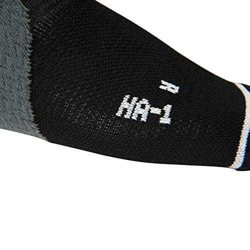 - Imported - a-Fit provides an anatomically correct fit for right or left foot - Arch Support knit construction ensures functional support for plantar - Heel lock technology ensures proper fit and enhanced heel stabilization - Flyweight tech provides an advanced material fabrication with lightweight construction - V-Tech's ventilated flow through design keeps you cool while in motion Zamst All Sport HA-1 Compression Support Run Sock G-Fit, Color Choices 775300. The HA-1 Compression with G-Fit technology delivers vertical gradual compression from the ankle through the calf muscle. This improves circulation to encourage blood and oxygen flow to the muscles. The G-Fit Tech also aids with flushing out bi-products (lactic acid), reducing muscle vibration and fatigue, which improves muscle endurance and recovery. The HA-1 Compression sock has built in a-Fit technology provides anatomically correct support and fit for the left and right foot. The HA-1 Compressions functional support and unique knitting technology stabilizes the heel in a neutral position, and lifts up the arch of the foot to prevent it from leaning inward. This will minimize the stress from repetitive impact on the foot to reduce plantar fasciitis. Color: Multiple color choices. 775300