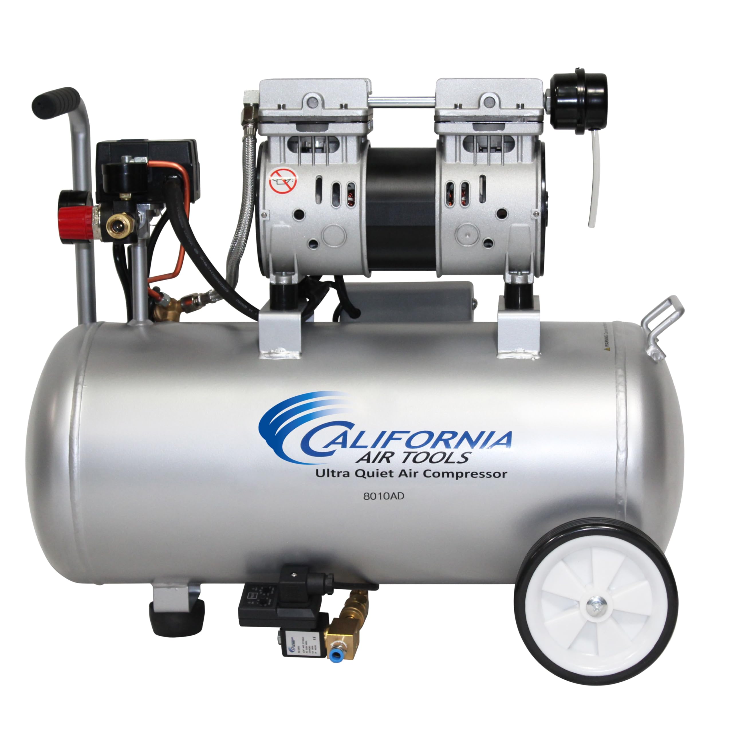 California Air Tools 8010AD 1.0 HP Ultra Quiet y compresor de aire sin aceite, tanque de acero de 8 galones, liviano con ruedas, nivel de ruido de 60 DBA, con válvula de drenaje automática