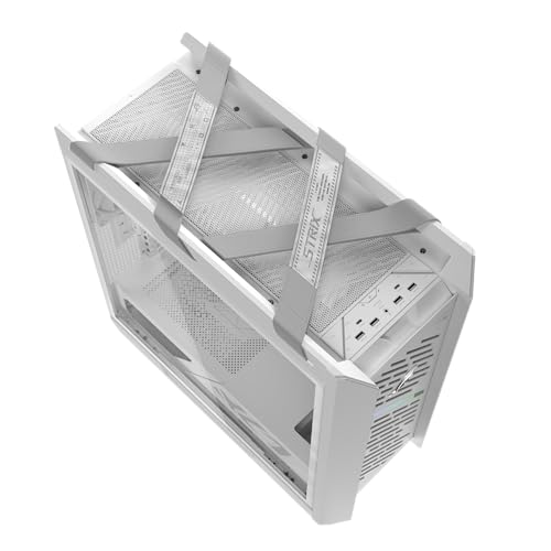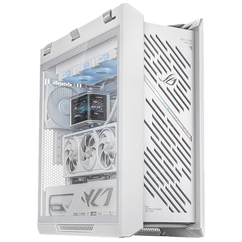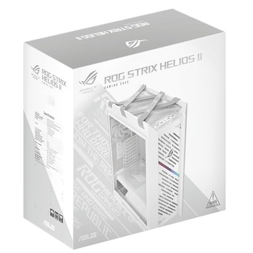 Carcasa para PC ASUS ROG Strix Helios II White Edition EATX de torre media para juegos, con paneles laterales dobles de vidrio templado, soporte para GPU de hasta 450 mm de largo, soportes para tarjetas gráficas y soporte para radiadores de hasta 420 mm
