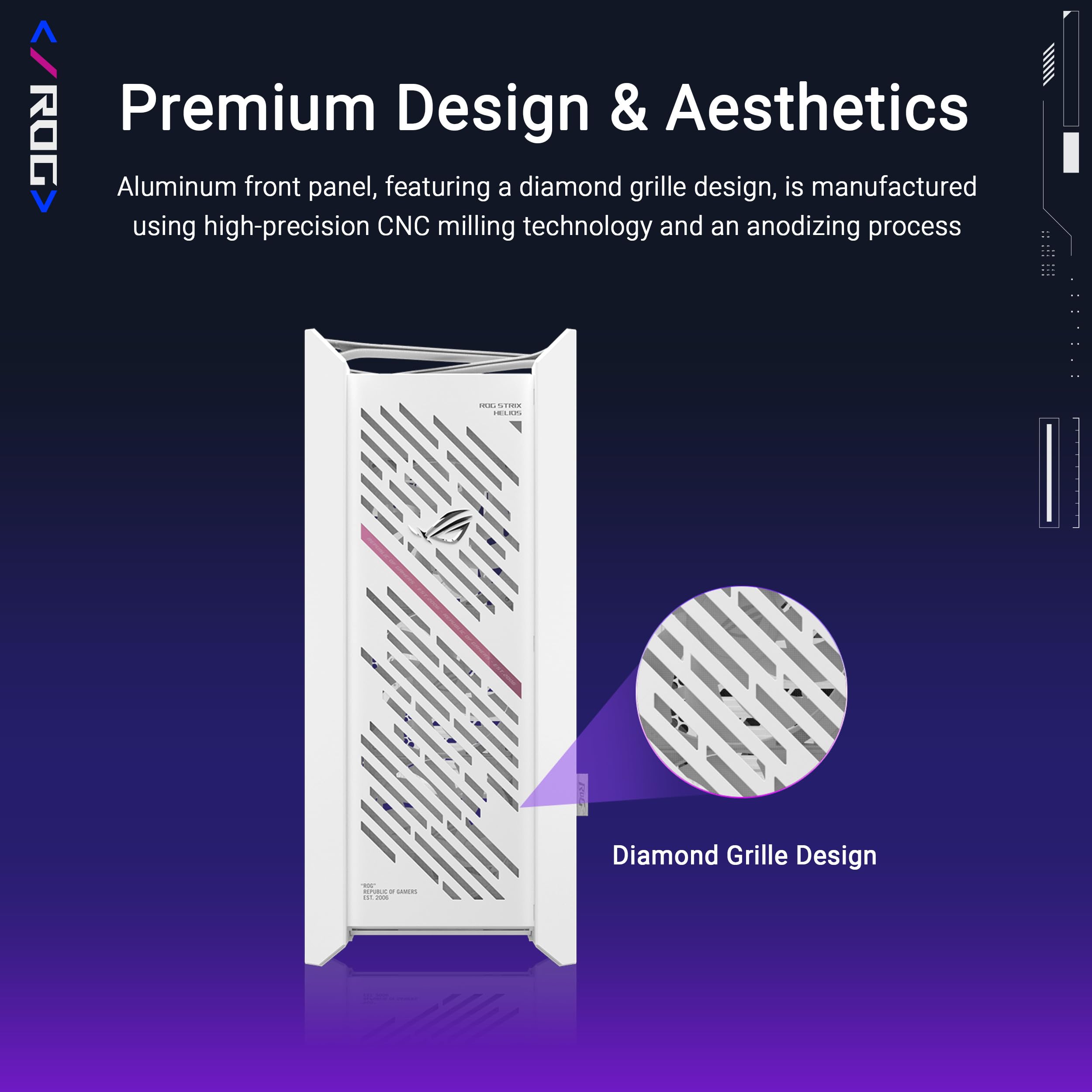 -Premium design: The Helios II is made for showcase builds, with aluminum front panel featuring diamond-grille design and 3D-structured filter to support effective cooling