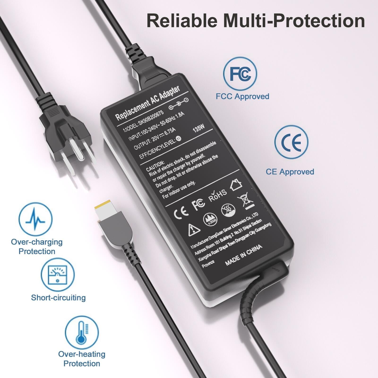 -Connector: USB Square Yellow Tip.(Please refer to the picture)Compatible Model: 135W charger replacement for Lenovo IdeaPad Y40 Y50 Y70 y50-70 touch S431 S440 ,for Thinkpad yoga720-15IKB / Yoga 14 / Yoga 260 / Yoga 370 / Thinkpad P1 X1 Extreme 1st 2nd 3rd 4th Gen 1 2 3 4