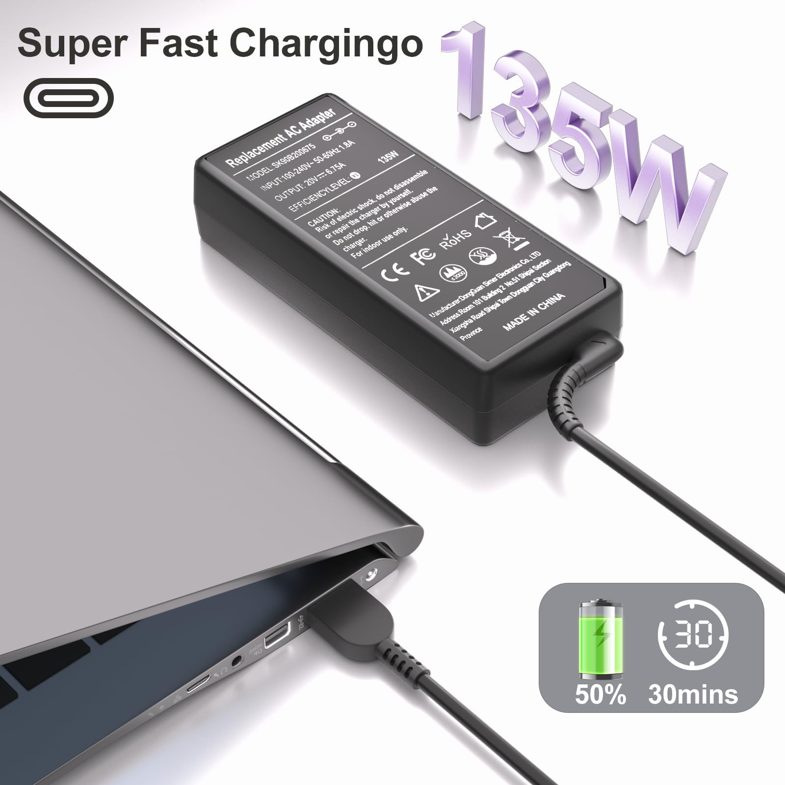 Urabiu Cargador de CA de 135 W para Lenovo Ideapad Gaming 3 Series 3-15 Yoga Slim 7 9 IdeaPad Y50-70