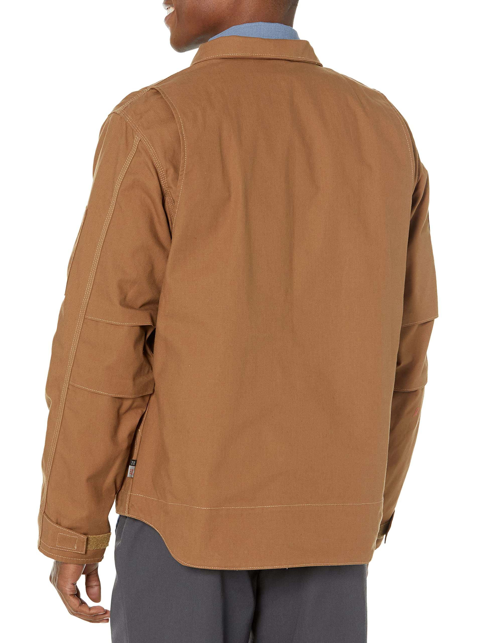Description Flame resistant. Looks traditional, feels exceptional. Engineered design provides stretch without bulk, and every element works with you so you can work easier. The protection and comfort you need for a tough workday. Made from 8.5-ounce, FR quick duck: 88 percent cotton/12 percent nylon with the rain defender durable water repellent finish. It offers mighty back bi-swing between shoulders for instant recovery, flex elbow for less restriction, freedom gusset under the arms stops ride-ups, has a stand-up collar, left-chest map pocket with zipper closure, two lower-front pockets with zipper closures, left sleeve upper arm pocket, two inside patch pockets with FR hook-and-loop closures, vision front zipper with Nomex FR zipper tape plus inside protective flap, adjustable cuffs with ergonomic shaped sleeve hem, triple-stitched main seams for durability, has the Carhartt FR and NFPA 2112/cat 2 labels sewn on lower front and it meets the performance requirements of NFPA 70e and is UL classified to NFPA 2112.