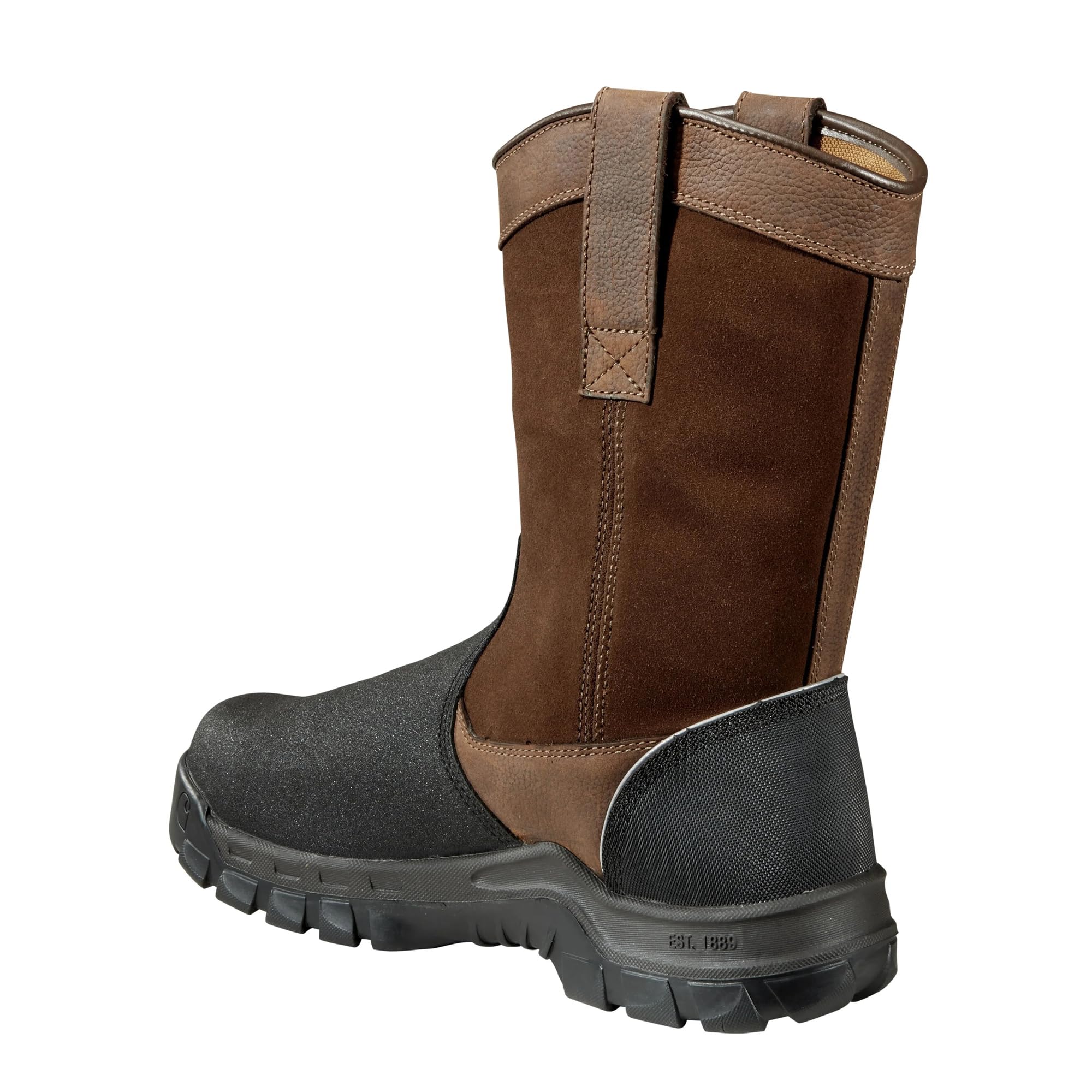 Description Carhartt developed met guard work boots to provide extra protection for hard working men in the most demanding jobs. We put safety first when it comes to your feet. Internal metatarsal guard identifies protection against impact and compression hazards to the top of the foot with a metatarsal guard. Metatarsal styles meet ASTM F2413-18 MT standards. Carhartt rubber outsoles provide superior traction and Carhartt pu with foam cushion insole provides comfortable support and reduces foot fatigue. Storm defender waterproof breathable protection is designed to be completely waterproof and to keep your feet dry in most types of wet conditions.