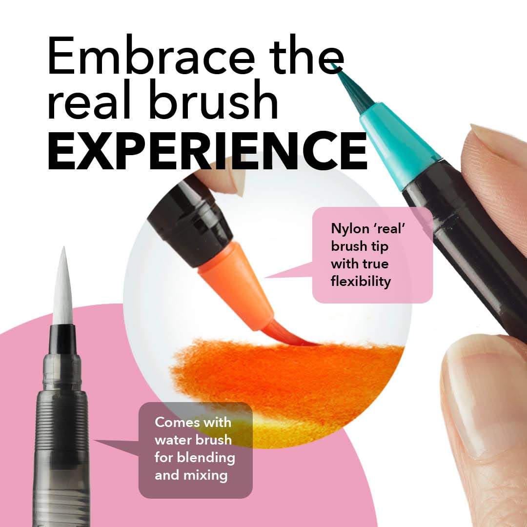 -ENJOY THE VERSATILITY Continuous flow through flexible brush tips gives freedom to use thin precise strokes for details or lettering, or cover space with thick strokes. Designers, colourists, calligraphers, artists…you’ll all love them.